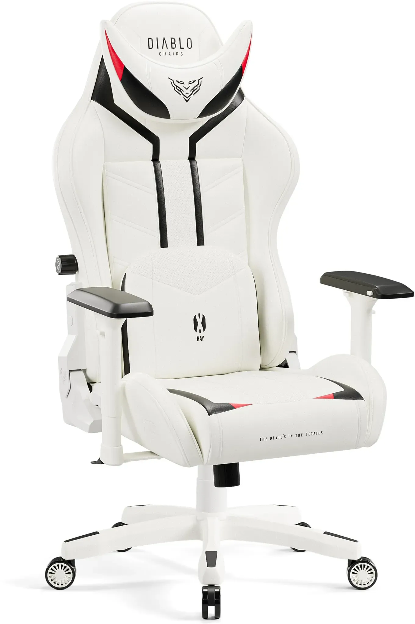 Zustand: Neu - Lehnstühle - Diablo Diablo Chairs - X-Ray 2.0 1740 - EAN: 5904405579091 - ERGONOMISCHE UNTERSTÜTZUNG - Der Gaming-Stuhl stützt die Wirbelsäule dank Lendenwirbelkissen und magnetischer Kopfstütze. Mit der ProSpine Support-Technologie können Sie die Kontur der Rückenlehne so anpassen, dass sie optimal zu Ihrer Körperform passt. INNOVATIVE TILTTECH-FUNKTIONEN - Mit dem Tilttech Gear-Mechanismus können Sie die Neigung der Rückenlehne einstellen, während der Tilttech Swing sicheres Schaukeln ermöglicht. Dank ihnen können Sie den Stuhl ganz einfach an Ihre bevorzugte Position und Arbeitsweise anpassen. KOMFORT DANK HR-SCHAUM UND DUAL LAYER - Sitz mit HR-Schaum und einer zusätzlichen Dual Layer-Schicht sorgt für Weichheit, Elastizität und Haltbarkeit. Die Polsterung aus HDS Air und HDS Ökoleder rt Atmungsaktivität und Komfort den ganzen Tag lang. VERSTELLBARE ARMLEHNEN -Das Armtech Hybrid-System ermöglicht eine Höhen-, Vorwärts-, Rückwärts- und Seitenverstellung. Die weiche SoftTouch-Oberfläche bietet eine bequeme Unterstützung der Unterarme und verbessert so Komfort und Ergonomie. BEWEGUNGSGLEICHMÄSSIGKEIT UND STABILITÄT - Der Stuhl verfügt über einen Lift der Klasse 4 mit Air Damper-System, das Bewegungen abfedert und eine sanfte Höhenverstellung ermöglicht. Die PFC360-Räder sind leise, wendig und schonen den Boden. - Verkäufer: Domator24 im amazon.de Marketplace Dieser Gaming Stuhl in Weiß-Schwarz ist eine King Size Variante, die sich durch ihr stilvolles Design auszeichnet. ![]() ![]() Diablo Chairs X-Ray Gaming-Stuhl Weiß-Schwarz