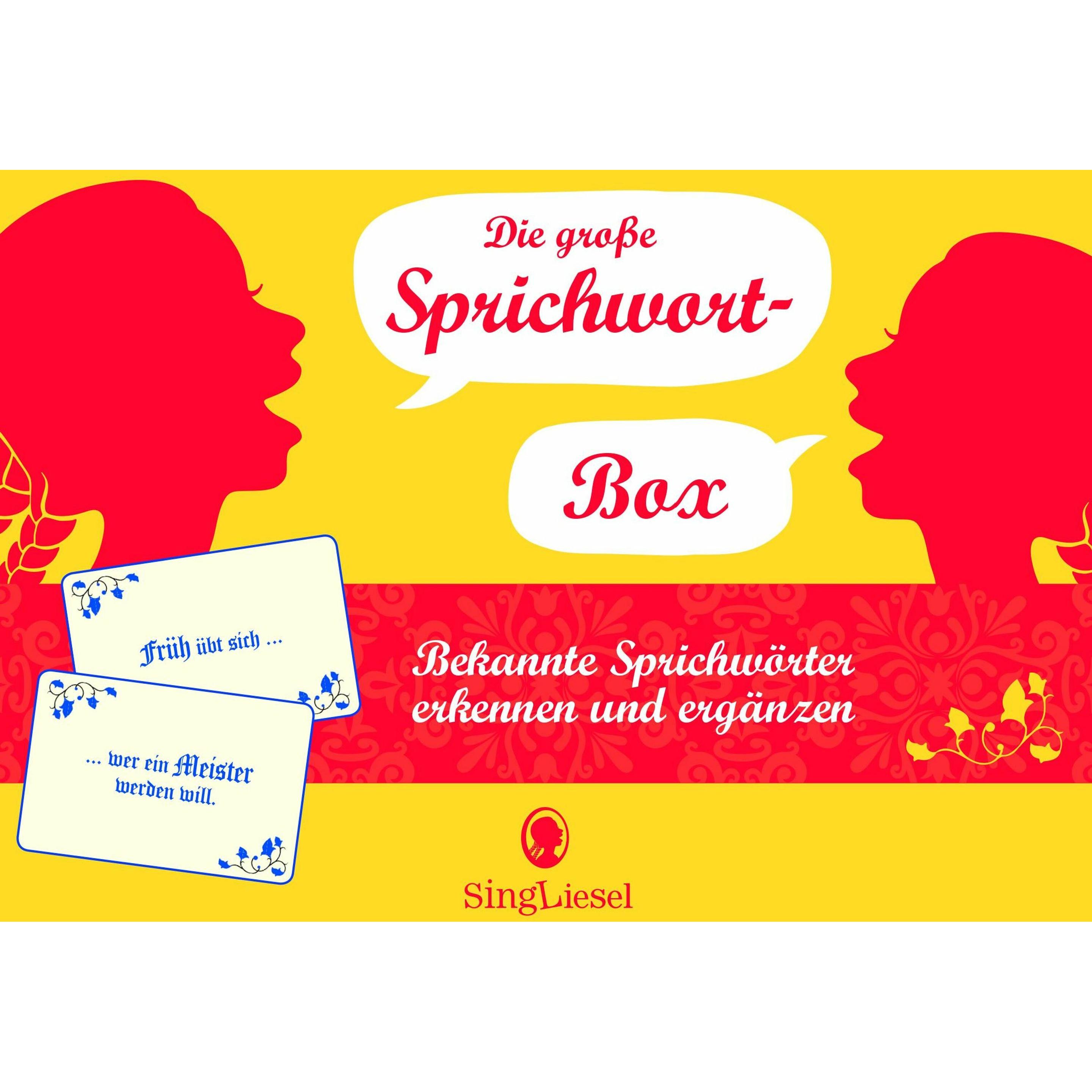 Gesamtsortiment Spielzeug Spiele + Puzzles Gesellschaftsspiele Rätselspiele - EAN:4280000809254 - Die Sprichwort-Sammlung ist ein unterhaltsames und bewährtes Gedächtnis- und Ratespiel. Die SingLiesel-Sprichwort-Box enthält 100 Karten mit den bekanntesten deutschen Sprichwörtern und Redewendungen. Die Spielidee ist einfach und bereitet deshalb immer wieder grossen Spass: Auf der Vorderseite jeder Karte ist nur die erste Hälfte des Sprichworts zu sehen. Die zweite Hälfte kann erraten und auf der Rückseite nachgelesen werden. Die liebevolle nostalgische Gestaltung der Karten und das XXL-Format fördern die Freude an diesem Ratespiel. Die SingLiesel-Sprichwort-Box: Das Gedächtnis- und Ratespiel, das immer wieder Freude bereitet. - gefunden von Kelkoo ![]() ![]() Die große - Sprichwort-Box SingLiesel eBay Verlag