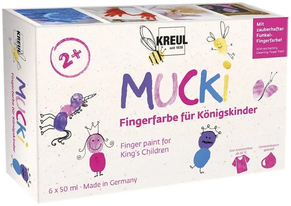10 Händlerangebote bei billiger.de - Kategorie: Malen - Kreul - Einmal so furchtlos wie ein Ritter oder so anmutig wie eine Prinzessin sein: Wenn funkelnder Goldschatz und magisches, metallisch-schimmerndes Feenstaub-Rosa auf leuchtendes Pink und Blau treffen, fangen Augen zu glitzern an. Aus weißem Papier entsteht ein farbstarker Schatz und kleine Rabauken werden zu sanften Königskindern. Die Farbtöne bezaubern und bringen Kind und Eltern zum Strahlen. Das Mini-Set ist eine liebevolle Geschenkidee zum Mitbringen. Kleine Künstler ab n können damit MUCKI Fingerfarben kennenlernen und probieren. Leuchtkräftige Farben auf Wasserbasis für Kinder ab zwei Jahren Gute Deckkraft Cremig-pastose Konsistenz für die optimale Anwendung mit Fingern und Händen Auch mit Pinsel, Schwamm oder Spachtel vermalbar Für Papier, Pappe, Keilrahmen, Glas, Holz, Fliesen, Spiegel, Stein Gut auswaschbar ab 30 C Bemalte Fensterscheiben, Fliesen o.ä. sind mit lauwarmem Seifenwasser leicht zu reinigen Bitterstoffe schützen vor ungewolltem Verzehr Dermatologisch getestet Parabenfrei, glutenfrei, laktosefrei, vegan KREUL 23051, Farbe auf Wasserbasis, 50 ml, 6 Stück(e) KREUL 23051. Typ: Farbe auf Wasserbasis, Empfohlene Altersgruppe: Universal, Geeignet für Materialien: Karton, Keramik, Glas, Papier, Stein, Holz. Nachhaltigkeitszertifikate: Gut für Veganer, Enthält nicht: Gluten, Paraben. Volumen (ml): 50 ml. Menge pro Packung: 6 Stück(e) MUCKI Fingerfarbe für Königskinder 6er Set - GTIN:4000798123871 ![]() ![]()