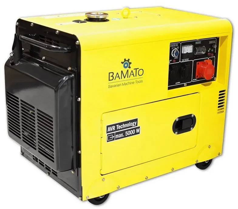 Generatoren Werkzeug Werkstatteinrichtung & Werkstattzubehör Stromerzeuger & Zubehör Stromerzeuger Elektrowerkzeuge - EAN:4260307353056 - Der EBERTH GG1-ERD5000E-1 Diesel Stromerzeuger ist nahezu überall einsetzbar , überall da wo es keine Steckdose gibt. Mit seiner Maximalleistung von 5000 Watt ist dieser Stromerzeuger ein starker zuverlässiger Begleiter. Bei dem Gerät handelt es sich um ein 1-Phasen Gerät . Wird nur eine 230V Steckdose benutzt, so steht dort die maximale Leistung von 5000 Watt zur Verfügung. Damit ist der Betrieb von Verbrauchern mit hohen Anlaufströmen möglich. Achtung: Dieses Gerät hat keine Starkstromsteckdose (400V)! Der Stromerzeuger kann bequem über den E-Start gestartet werden, oder wie üblich per Seilzug . Für eine stabile Ausgangsspannung sorgt der automatische Voltregler (AVR) . Zusätzlich verfügt der Stromerzeuger über eine Ölmangelsicherung zum Schutz des Motors. Bei entsprechender Wartung und Pflege bietet dieses Gerät beste Voraussetzungen für einen zuverlässigen Einsatz und eine lange Lebensdauer . Auslieferung erfolgt ohne Öl und Diesel, nur Diesel Kraftstoff verwenden! Top Features - gefunden von Kelkoo Der BAMATO BGE-5000D ist ein preiswerter Allrounder mit 5000 Watt und Elektrostart, der für viele Anwendungen geeignet ist. ![]() ![]() BAMATO Diesel Stromerzeuger BGE-5000D