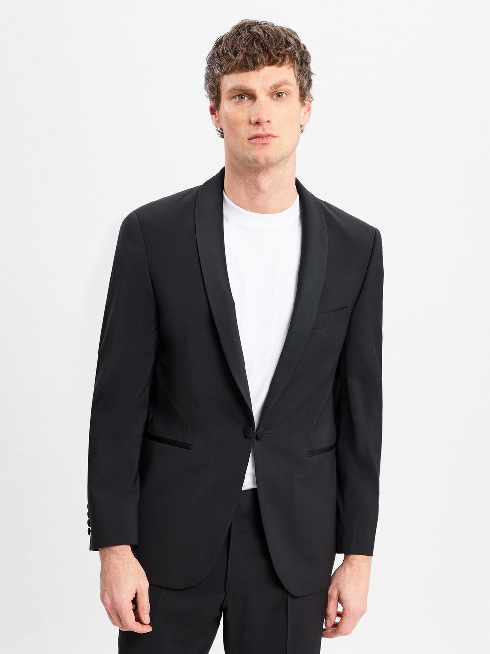 Digel - Anzüge, beige, Regular Fit,M odern Fit, meliert. Beige-braune Melange trifft moderne Jersey-Qualität Die raffinierte Melange-Optik in warmen Beige- und Brauntönen verleiht diesem Baukasten-Anzug eine zeitlose Eleganz mit modernem Twist. Das hochwertige Jersey-Material aus Polyester, Viskose und Elasthan fühlt sich angenehm weich an und bietet dank des Stretch-Anteils volle Bewegungsfreiheit für lange Bürotage. Der Modern Fit schneidet eine schlanke Silhouette, ohne einzuengen - ideal für Business-Termine und festliche Anlässe. Das halbgefütterte Sakko mit Seitenschlitzen und die Hose mit verlängertem Bund unterstreichen die durchdachte Verarbeitung. DIGEL revolutionierte als schwäbisches Familienunternehmen seit den 1960er Jahren die Herrenmode mit dem innovativen Baukasten-System - bei diesem Anzug wählen Sie Sakko- und Hosengröße individuell für Ihre perfekte Passform. Unser Tipp: Kombinieren Sie den Anzug mit einem cremefarbenen Hemd und cognacfarbenen Lederschuhen für einen stilvollen Business-Look. Obermaterial: 66 % Polyester , 21 % Viskose , 10 % Polyamid , 3 % Elasthan Details zum Sakko: Einreiher mit Brusttasche, paspelierten Pattentaschen, Rücken mit Seitenschlitze Details zur Hose: Verlängerter Bund , seitliche Einschubtaschen, geknöpfte Gesäßtaschen Futter: Halbgefüttert, 94 % Polyester, 6 % Elasthan Marken Fit : Modern Fit Herkunftsland: Europa Maße: Das Modell trägt die Größe 50, bei einer Körpergröße von 188 cm Sakko: Rückenlänge ca. 72 cm, ... Ein elegantes Smoking-Baukasten-Sakko aus Schurwolle in Schwarz, perfekt für besondere Abendveranstaltungen. ![]() Digel Smoking-Baukasten-Sakko aus Schurwolle Herren Modern Fit Schurwolle schwarz, 52