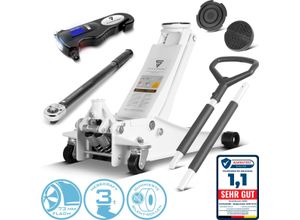 Heimwerken Wohnen Haus Garten - - EigenschaftenUnverzichtbar beim Reifenwechsel: Der hydraulische Wagenheber hebt Fahrzeuge mit einem Gewicht von bis zu 3 Tonnen und verfügt über einen großen Hubbereich von 73-500 mm.Aufgrund des kompakten Designs und der extrem niedrigen Bauweise kann der extra flache Hydraulik-Wagenheber auch bei beengten Platzverhältnissen und bei geringer Fahrzeughöhe eingesetzt werden.Die gummierten Rollen des Rangierwagenhebers sind extrem leise, leichtgängig und überzeugen durch äußerst geringe Geräuschemissionen.Die Hubstange des Wagenhebers besitzt einen um 360° Grad drehbaren Griff mit angenehmer Haptik sowie zwei praktische Schaumstoffpolster zum Schutz der Karosserie.Eine integrierte Magnetablage dient zur Aufbewahrung von Schrauben und Kleinteilen.Der Drehmomentschlüssel TW-210 ST arbeitet in einem Bereich von 28-210 Nm und eignet sich ideal zum präzisen Festziehen von Schrauben mit zuvor definiertem Drehmoment.Technische DatenModell: STAHLWERK Wagenheber WHW-73 STMaximale Traglast: 3 tHubbereich min: 73 mmHubbereich max: 500 mmHubsystem: DoppelhubkolbenRollen: Gummierte Long-Life-Silent-RollenFarbe: WeißMaterial: StahlGewicht: 30,95 kgModell: STAHLWERK Drehmomentschlüssel TW-210 STArbeitsbereich: 28 - 210 NmAufnahme: 1/2' Zoll-Vierkant-AufnahmeMaßeinheit: Newtonmeter (Nm) / Kilogrammmeter (M.KGS)Lieferumfang1 x STAHLWERK Wagenheber WHW-73 ST1 x STAHLWERK Drehmomentschlüssel TW-210 ST1 x 5-in-1 Reifendruckprüfer mit LED-Licht - Digitaler ... ![]() wecycle.de We Cycle Topeak Torq Stick Pro Digital Werkzeugset mit digitalem Drehmomentschlüssel schwarz