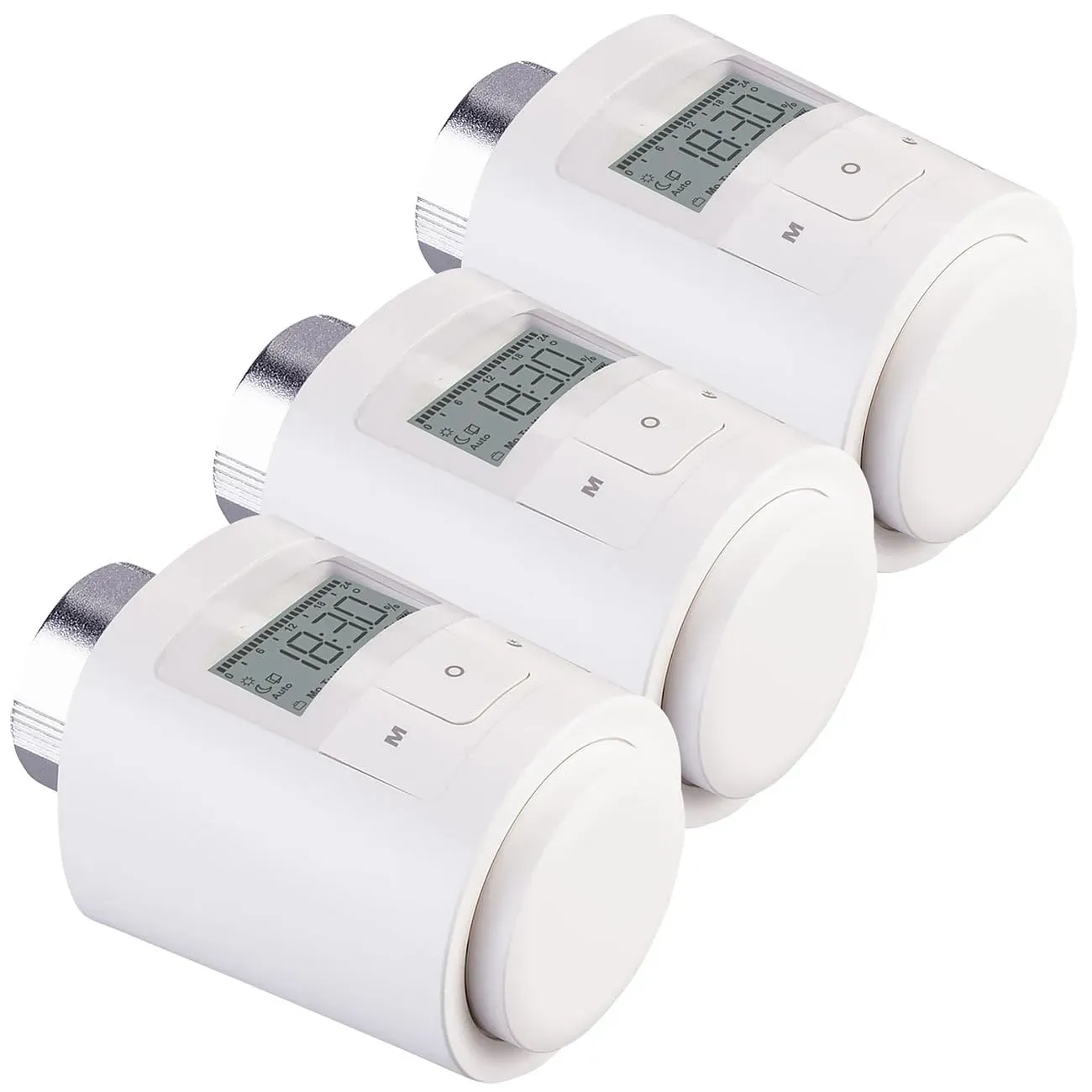 keine Angabe Gewöhnlich versandfertig in 4 bis 5 Tagenrevolt Heizkoerperthermostate: 3er-Set Programmierbare Universal-Heizkörper-Thermostate, Display (Digitales Heizkörperthermostat, Thermostat-Heizkörperventil)