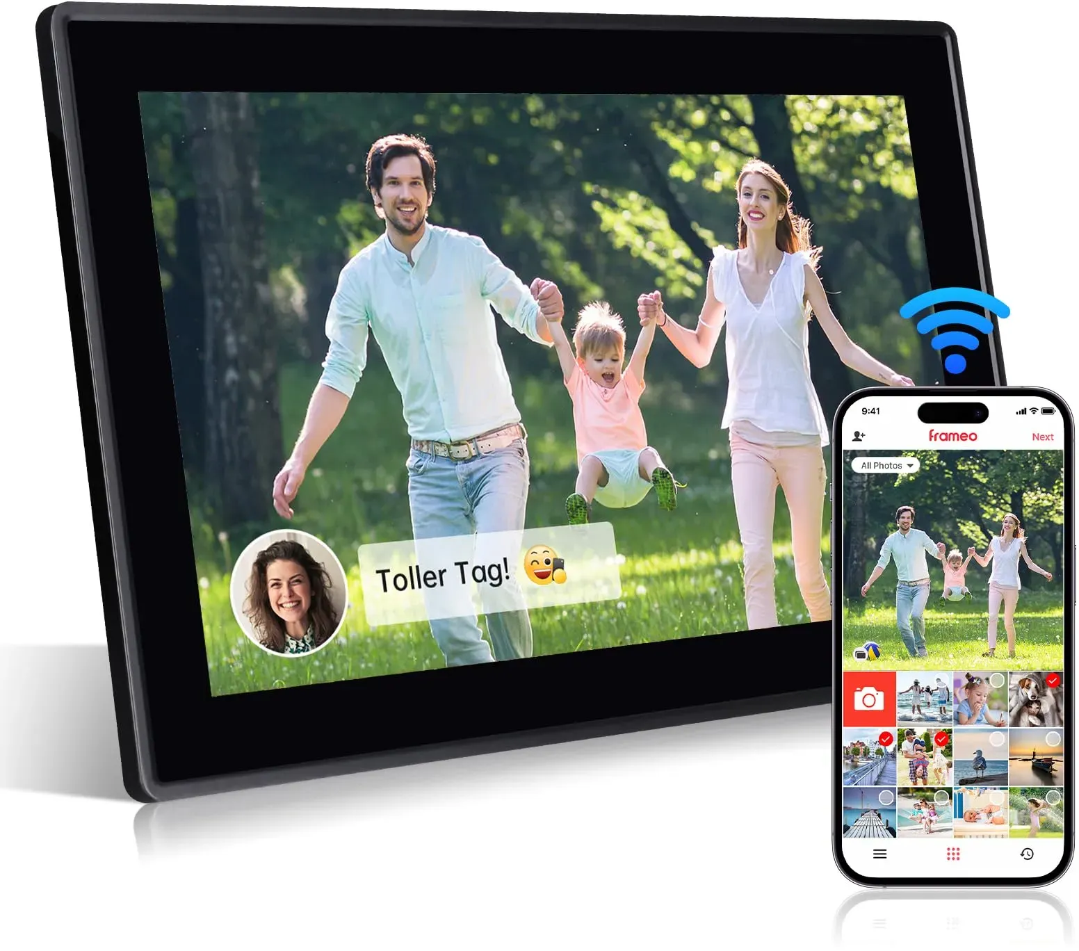 Kategorie: Digitale Bilderrahmen - VBESTLIFE - SOFORT TEILEN: Mit dem digitalen 15-Zoll-Fotorahmen können Sie Fotos und Videos mithilfe der Vphoto-App auf Ihrem Smartphone ganz einfach aus der Ferne mit der Familie teilen. Die benutzerfreundliche Oberfläche ist für alle Altersgruppen geeignet. Die Einrichtung dauert nur ein paar Schritte und der intuitive Touchscreen macht die Bedienung einfacher als je zuvor. GROSSE SPEICHERKAPAZITäT: Dieser intelligente 15-Zoll-Fotorahmen kann über 80.000 Fotos speichern. Es unterstützt auch Speicherkarten mit bis zu 32 GB und Typ-C-Laufwerke zum Lesen von Dateien und zum Exportieren von Fotos und Videos. für die Verwaltung Ihrer Fotoalben. AUTOMATISCHES DREHEN UND DIASHOW: Der WiFi-Digitalrahmen dreht Fotos automatisch, um die Ausrichtung anzupassen, kann zwischen Quer- und Hochformatversionen wechseln und kann zur Dekoration an der Wand montiert werden. Die dynamische Diashow-Funktion verleiht statischen Bildern Lebendigkeit und verbessert so das gesamte Seherlebnis. HD-BILD: Ausgestattet mit einem HD-Touchscreen mit einer Auflösung von 1024 x 768 sorgt der elektronische Bilderrahmen für lebendige, klare und lebendige Farben in Fotos oder Videos und bietet große Betrachtungswinkel und eine genaue Farbwiedergabe für Ihre Fotos und Videos. PERFEKTES : Mit dem elektronischen digitalen Fotorahmen können Sie Fotos oder Videos von überall auf der Welt teilen. Es ist einfach zu bedienen und ideal für ältere Familienmitglieder, die keine ... Dieses Frameo-Modell bietet ein gutes Preis-Leistungs-Verhältnis mit 32GB Speicher und IPS-Display mit Touch-Funktion. ![]() ![]() Frameo WLAN - Digitaler Bilderrahmen eBay 15,6 Zoll 32GB IPS-Display mit Touch-Funktion