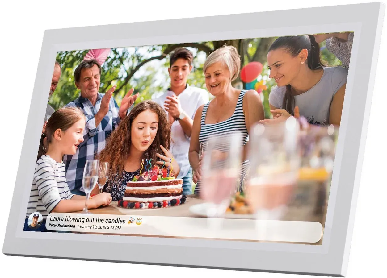 Auf Lager Versand durch AmazonFrameo 15,6 Zoll Digitaler Bilderrahmen WiFi mit 32 GB, Full HD IPS Touchscreen (1920x1080), Fernversand von Fotos & Videos per FRAMEO App, Wandmontage, Weiß Eltern & Großeltern