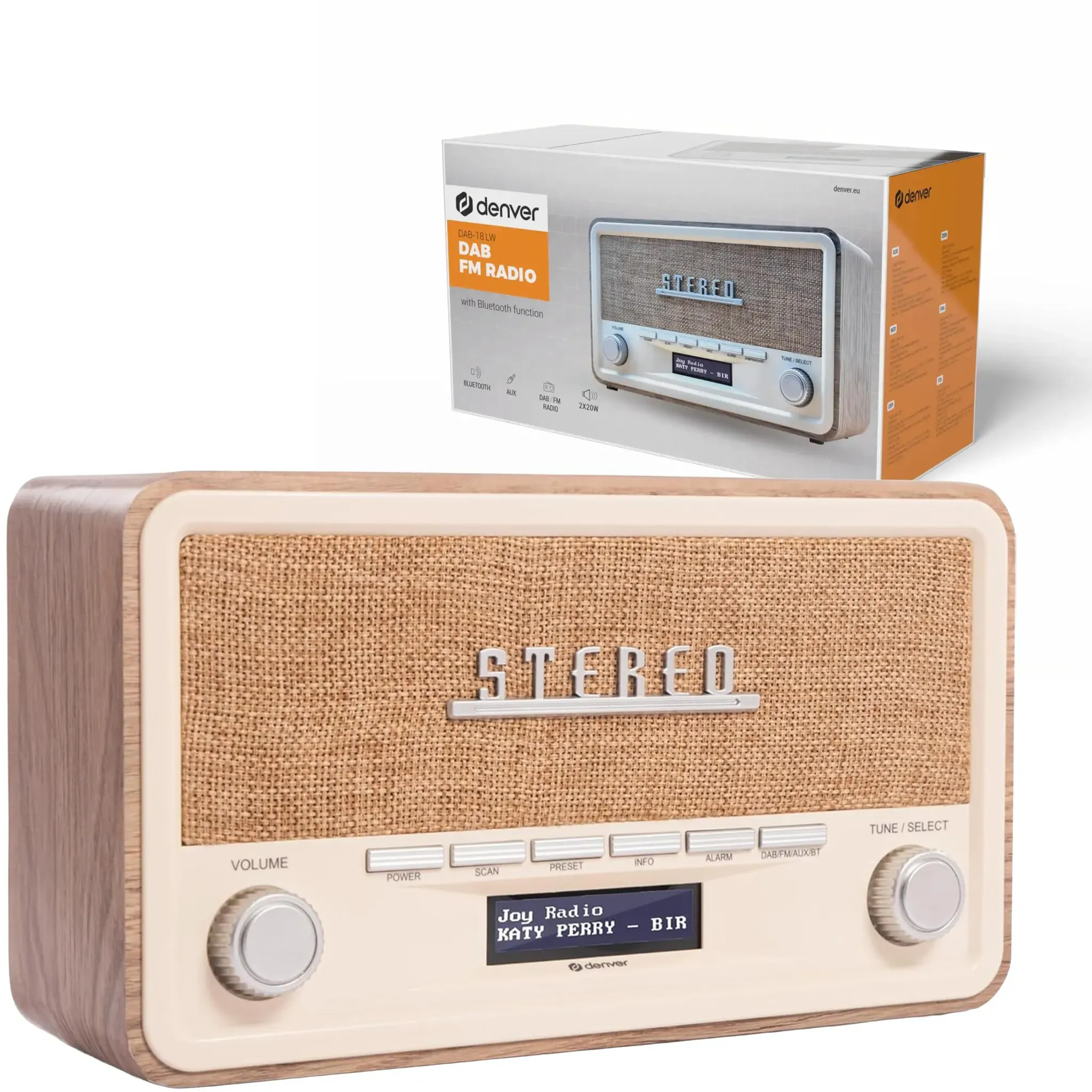 Kategorie: Radios - MangoKit - DAB/DAB+ und FM Digitalradio: Die integrierte digitale DAB-Technologie sorgt für mehr Radiosenderempfang als herkömmliches Radio. Schneller automatischer Scan, um Ihre Lieblingsradios automatisch zu suchen und Ihnen eine optimale Digitalradio-Leistung zu sichern. Drücken Sie die Pre-Set-Taste, um Ihre bevorzugten 20 DAB- und 20 FM-Sender zu speichern oder darauf zuzugreifen, um mit guter Klangqualität zu hören. Bluetooth-Lautsprecherradio - Genießen Sie die drahtlose Bluetooth-Verbindung von Diensten wie Spotify, Apple Music, YouTube und anderen Streaming-Diensten. Schnelles Koppeln und Verbinden mit Ihren Smartphones, sodass Sie Musik genießen können, wo immer Sie sind. Tipps Der Bluetooth-Name ist 'Stereo DAB Radio'. Netz- und batteriebetrieben: Kompakte Größe mit Stromversorgung sowohl mit Netz- als auch 4 AA-Batterien (nicht im Lieferumfang enthalten), sofern Sie Musik im Garten/Küche/Wohnzimmer hören wo immer Sie Ihre Musik genießen möchten. Des Weiteren kann Powerbank auch das Gerät einschalten, USB-Kabel ist im Lieferumfang enthalten. Freundliche Tipps Bitte verwenden Sie wiederaufladbare AA-Batterien für wirtschaftliche und umweltfreundliche Anwendungen, jedoch kann das Radio die wiederaufladbaren Batterien nicht aufladen. Tragbares DAB-Radio mit privater Musik: Kopfhöreranschluss auf der Rückseite des Radios, hören Sie Ihre private Musik über die Kopfhörer, ohne andere zu stören. TFT-Farbdisplay zum Display ermöglicht einfaches ... Dieses Retro-Digitalradio bietet DAB+, Bluetooth und 2x20W Stereo-Lautsprecher zu einem attraktiven Preis. ![]() ![]() Denver Retro DAB-18 Digitalradio | DAB Plus Radio mit Bluetooth & FM | 2x20W Stereo-Lautsprecher | Kleines Radio mit Netzstecker | Küchenradio DAB mit gutem Klang | LCD-Display & Weckfunktion