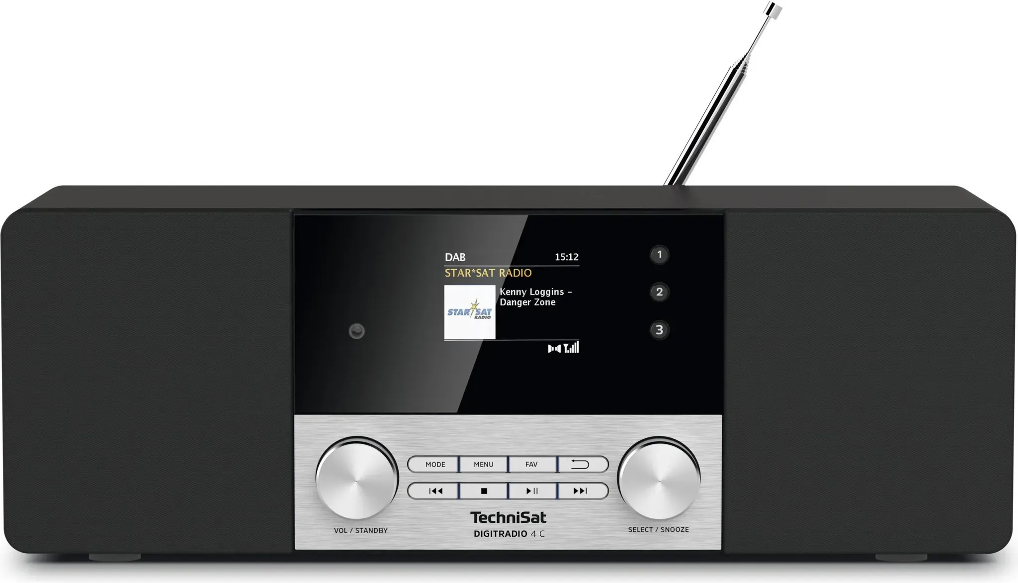Zustand: Neu - Radiowecker & Uhrenradios - TechniSat - 0000/3937 - EAN: 4019588039377 - Qualität hergestellt in Deutschland: Entwicklung und Produktion des empfangsstarken Digitalradio erfolgen in Deutschland nach hohen Qualitätsstandards von TechniSat - Made in Germany Hervorragender Stereosound: Powered by Elac mit zwei 10W Lautsprechern und Equalizer Funktion - Hochwertiges Holzgehäuse mit Aluminium-Front und intuitive Bedienung am Gerät Volle Flexibilität: Musik per Bluetooth-Audiostreaming von z.B. Smartphone oder Tablet streamen, Radiowecker, Sleeptimer, Snooze Funktion, Favoritenspeicher, AUX-in und Kopfhörer-Anschluss Hochwertiges und gut lesbares 2,8 Zoll Farb-Display, Anschluß für externe Antenne (F-Buchse) 20 Speicherplätze für Ihre Lieblingssender, Drehregler und Tasten für kinderleichte Bedienung. Bluetooth-Version: 4.1 Lieferumfang: Stereo-Radio DIGITRADIO 4 C, schwarz, Teleskopantenne, F-Stecker-Werkzeug (für die abnehmbare Antenne), Fernbedienung, Bedienungsanleitung, Produktmaße (BxHxT): 38 x 13 x 16,8 cm - bei Amazon.de Dieses Digitalradio ist eine weitere gute Option für das DigitRadio 4 C in Schwarz/Silber zu einem wettbewerbsfähigen Preis. ![]() ![]() TechniSat DigitRadio 4 C (DAB+, FM, Bluetooth), Radio, Schwarz, Silber