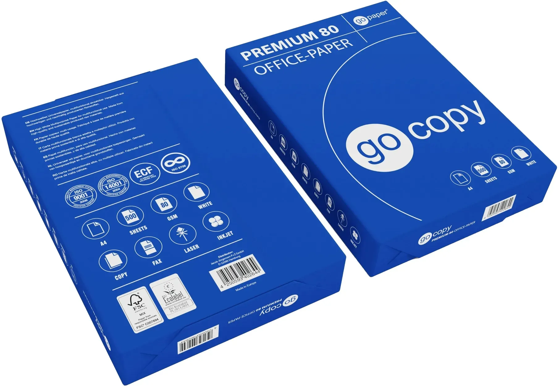 11 Händlerangebote bei billiger.de - Kategorie: Papier - go copy - Mit dem go copy Kopierpapier Premium 80 DIN A4 80 g/qm 500 Blatt erhalten Sie Qualität, die sich sehen lassen kannHier erhalten Sie einen ersten Eindruck zu den wichtigsten Eigenschaften des go copy Kopierpapiers Premium 80 DIN A4 80 g/qm 500 Blatt: Bedruckbar mit Laser, InkJetGeeignet für Kopierer, Drucker, Fax-GeräteDuplex-Druck und -KopieDIN A480 g/qmISO 14001, EU-Blume, FSC -zertifiziertLesen Sie weiter, um spannende Produktdetails zu erhalten!Hier lesen Sie, wozu Sie das Produkt nutzen könnenEinlegen können Sie den Artikel in Kopierer, Drucker, Fax-Geräte, genauer gesagt in Laser, InkJet-Geräte. Möchten Sie gerne Kosten und Zeit sparen und die Umwelt schonen? Dann ist das go copy Kopierpapier Premium 80 DIN A4 80 g/qm 500 Blatt mit der Möglichkeit zum beidseitigen Drucken und Kopieren optimal geeignet. Dank der Opazität von 91 % ist das Produkt praktisch blickdicht und das Gedruckte kommt auf beiden Seiten prima zur Geltung.Wichtige Werte für die passende Wahl: Farbe und FormatFür die meisten Ausdrucke im Arbeitsalltag eignet sich ein Hintergrund in Reinweiß perfekt. Somit können Sie jeden Tag zu diesem Produkt greifen. Die Seiten erhalten Sie außerdem im Format DIN A4. Da es sich hierbei um das gängigste Format handelt, ist das Produkt fantastisch für Ihre alltäglichen Anforderungen geeignet. Beispielsweise für Geschäftsbriefe.Erfahren Sie mehr zum PapiergewichtDicke und Stabilität des Produkts lassen ... Das Inapa tecno Speed Papier ist eine günstige und zuverlässige Wahl für den täglichen Druckbedarf. ![]() ![]() Inapa tecno Speed DIN A4 80 g/qm 500 Blatt