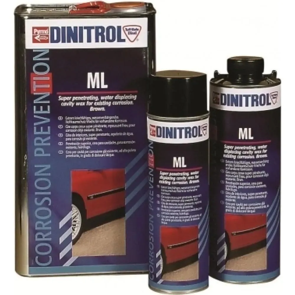 Kategorie: Reinigungsmittel - Dinitrol - GTIN:7314760110712 - Dringt durch Rost vor. Verhindert weiteres Korrodieren. Farbe: braun. Ideal zum Aufsprühen in geschlossene Mulden. Dringt in die feinsten Risse ein. - 23,40 Euro bei Amazon Marketplace Automotive - gefunden von billiger.de Ein praktisches Set mit 3 x 1 Liter Dinitrol ML, inklusive Overall und Maske, für eine sichere Anwendung. ![]() ![]() 3 x - 1 Liter eBay Dinitrol ML Unterbodenschutz stark korrosiv + Overall + Maske