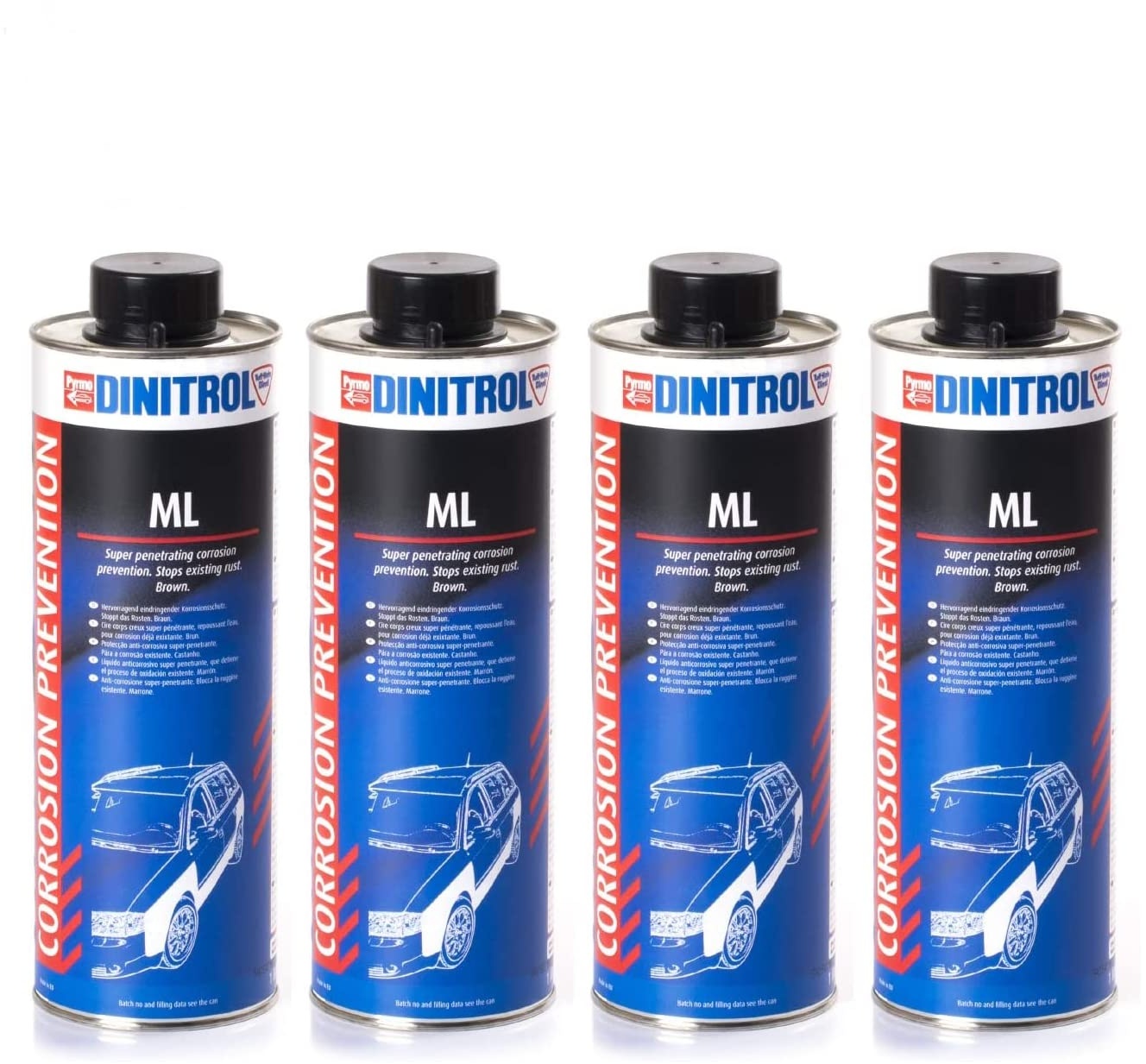 Kategorie: Autoreinigung & Pflege - Dinitrol - GTIN:0036336446816 - Extrem durchdringendes Produkt zur Korrosionsschutz von Hohlräumen Ideal für Oldtimer und ältere Fahrzeuge Stoppt anhaltende Korrosion erzeugt braunen, öligen, flexiblen Film Wasserverdrängende OEM-zugelassene Korrosionsschutzbeschichtung Nicht auf Motoren, Getriebe oder Stoßstangen sprühen - 67,94 Euro bei Amazon Marketplace Automotive - gefunden von billiger.de Ein 4er-Pack 1-Liter-Flaschen Dinitrol ML für eine umfassende Hohlraumversiegelung. ![]() ![]() 4x DINITROL - ML, 1L eBay Flasche Hohlraumversiegelung Korrosionsschutz universal