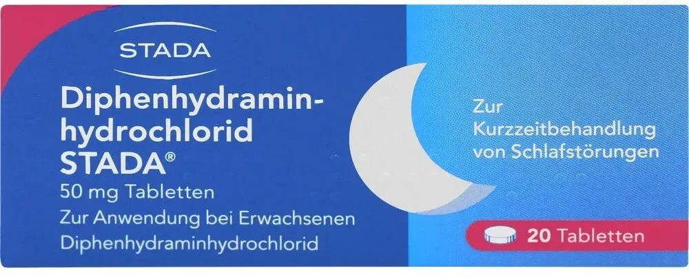 Kategorie: Arzneimittel - STADA - GTIN:4150175427976 - Schneller einschlafen & ruhiger durchschlafen Bewährter schlaffördernder Wirkstoff bei Schlafstörunge 30 Minuten vor dem geplanten Schlafbeginn einnehmen - 12,95 Euro bei Amazon Marketplace Health & Personal Care - gefunden von billiger.de ![]() ![]() Diphenhydraminhydrochlorid Stada - 50 mg eBay Tabletten 20 St - 17542797