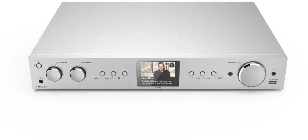 Auf Lager Versand durch AmazonHama DAB Tuner HiFi Digitalradio Internet Radio FM Tuner Bluetooth Tuner HiFi Internetradio Digitalradio FM WLAN Stereo Receiver Spotify Amazon Music Fernbedienung USB AUX Wecker DIT2105SBTX Silber