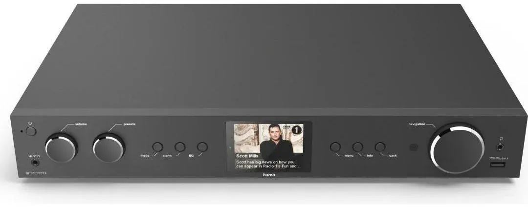 Zustand: Neu - Internet-Radios Internet Radios - Hama - 00054252 - EAN: 4007249542526 - Perfekte Ergänzung für die Stereo Anlage: HiFi Tuner mit rauschfreier Qualität durch DAB/DAB+ & mega Auswahl via Internetradio als ideale Nachrüstung Welt des Streamings: Durch Unterstützung für Amazon Music und Spotify ganz einfach Musik, eigene Playlists & Podcasts auf dem Netzwerkstreamer abspielen Alles ist möglich: Via Smartphone, Tablet oder PC über Bluetooth Musik auf der Sound Anlage abspielen oder vom Radio zum Kopfhörer/Lautsprecher senden Allrounder: DAB+ Tuner besticht durch guten Empfang, leichte Bedienung (App/Fernbedienung/direkt), USB, Aux, je 30 Favoritenplätze, Alarm Funktion Lieferumfang: 1x DIT2105SBTX Digitalradio Stereo Receiver, Netzkabel & Antenne, 2x F-Stecker Antennen, 1x Fernbedienung, 1x RCA Cinch Kabel - bei Amazon.de ![]() ![]() Hama DIT2105SBTX (Internetradio, DAB+, DAB, FM, UNDOK, Bluetooth, WLAN), Radio, Schwarz