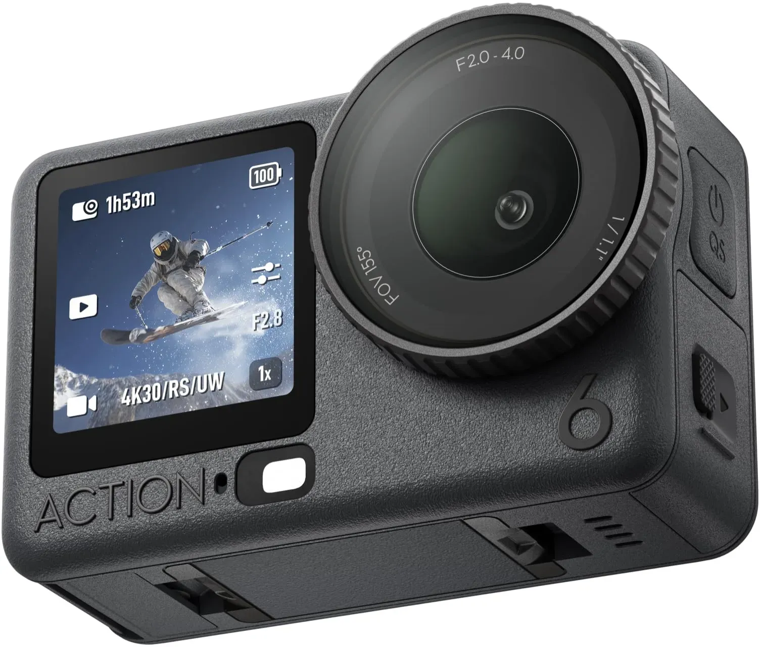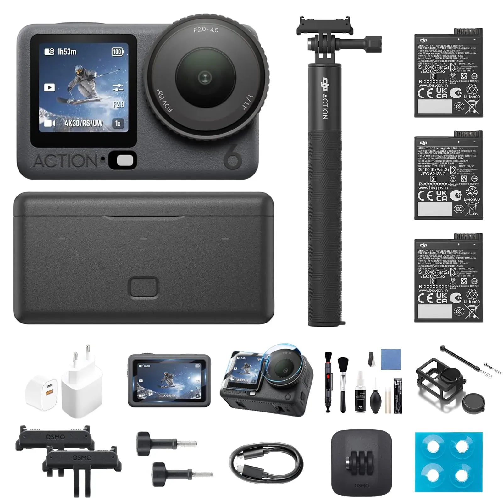 Sonstige Kameras Lifestyle Technik Foto Camcorder Digitalkameras - - Der Osmo Action 6 vereint eine innovative variable Blende mit einem brandneuen 1/1,1-Zoll-Quadratsensor, um die DJI-Flaggschiff-Bildgebung neu zu definieren und mehr Möglichkeiten für kreative Aufnahmen zu eröffnen., Kamerafunktionen: Empfindlichkeit ISO-Einstellung: 100 bis 51200, Verschlusszeit: 1/8000 bis 30, Anzahl Serienbilder pro Sekunde: 10 BpS, Aufnahmefunktionen: Autofokus, Belichtungskorrektur, Gesichtserkennung, Intervallaufnahme, Nachtaufnahme Funktion, Serienbildfunktion, Sprachbefehle, Video + Foto, Videostabilisierung, Zeitlupe, Zeitraffer, Aufnahmemodi: High-Speed-Modus, Nacht-Modus, Outdoor-Modus, Video+Foto, Seitenverhältnis: 4: 3, Typ Sensor: CMOS, Aufnahmeformate Foto: JPEG, RAW, Auflösung Foto in Megapixel: 38, Auflösung Foto in Pixel: 7168 x 5376, Objektiv: Lichtstärke maximal: f2,0, Bauart Objektiv: eingebaut, Bildschirm: Anzahl Bildschirme: 2, Bildschirmdiagonale in Zoll: 2,5 ″, Bildschirmdiagonale Bildschirm 2 in Zoll: 1,46, Bildschirmdiagonale in Zentimeter: 6,35 cm, Bildschirmdiagonale Bildschirm 2 in Zentimeter: 3,7 cm, Bildschirmtechnologie: Touch, Videofunktionen: Auflösungsstandard Video: 4K Ultra HD, Auflösung Video in Pixel: 3840 x 3840, Aufnahmeformate Video: MP4, Anschlüsse: Typ Anschluss: Card Reader, USB-C, Anzahl USB-Anschlüsse: 1, Typ USB-Anschluss: USB-C, Netzwerk- und Verbindungsarten: Netzwerkstandard: Bluetooth, Bluetooth-Version: 5.1 BLE, Wi-Fi-Standard: a, b, ... Die Vlog Combo ist mit ihrem umfangreichen Zubehör ideal für Content Creator und Vlogger. ![]() DJI Osmo Action 6 Vlog Combo