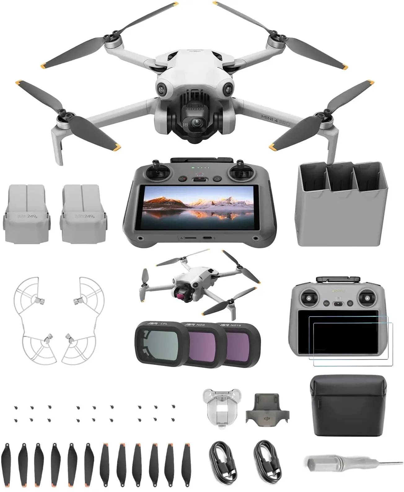 Auf Lager Versand durch AmazonDJI Mini 4 Pro Fly More Combo mit DJI RC 2 Fernsteuerung (Bildschirmfernsteuerung), faltbare Mini-Drohne mit 4K-Kamera, unter 249g, 34 Minuten Flugzeit, 2 zusätzliche Akkus, Klasse-C0