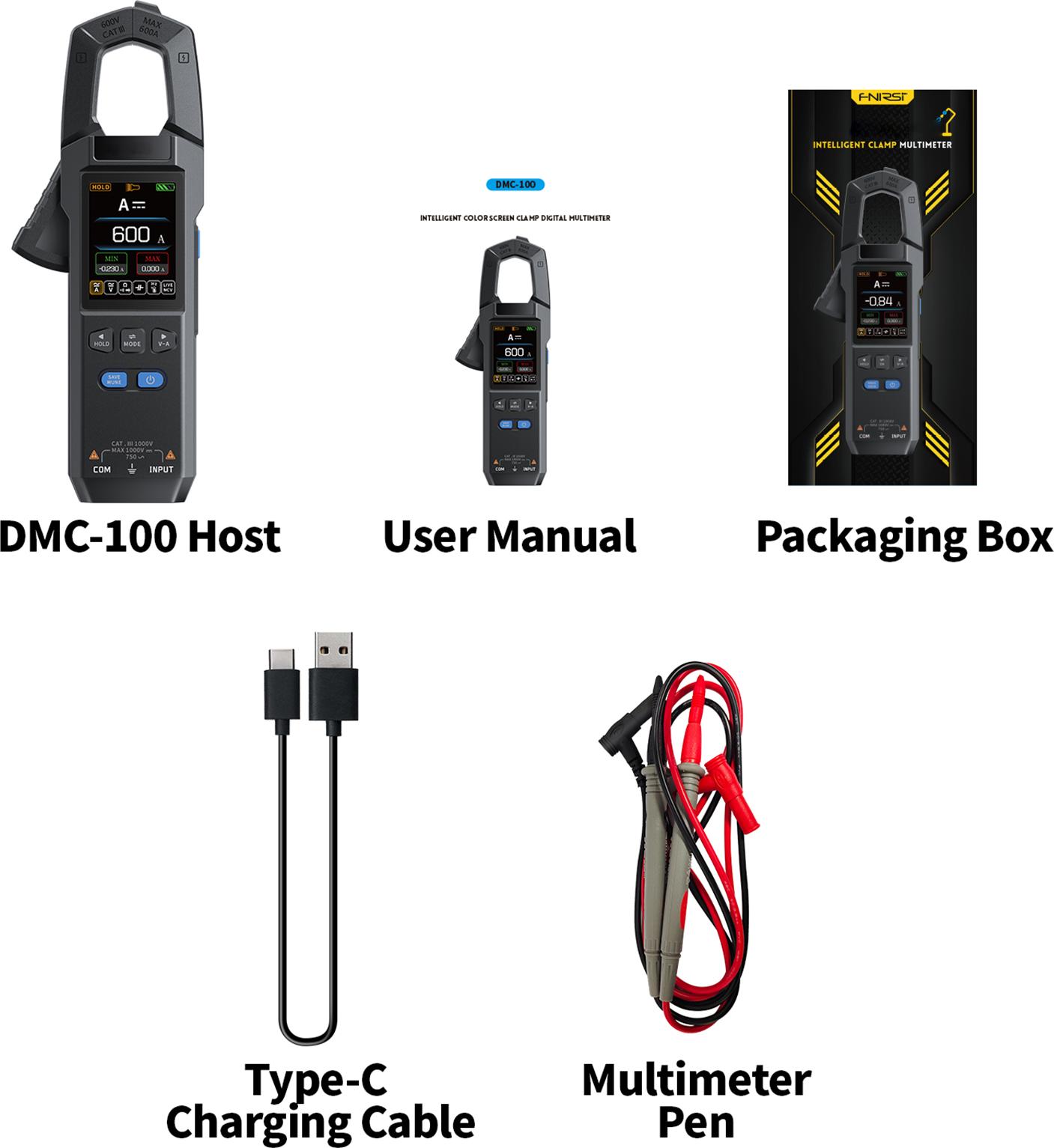 Auf Lager Versand durch AmazonFNIRSI DMC-100 Digitales Zangenamperemeter, 9999 Counts TRMS-Multimeter, 600A Kurvenaufzeichnung, wiederaufladbares Amperemeter mit Aufbewahrungstasche, NCV, AC/DC-Spannungsstrom, Durchgangskapazität