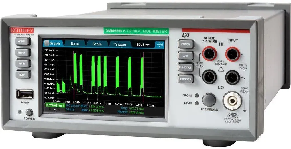 3 Händlerangebote bei billiger.de - Kategorie: Spannungsprüfer - Keithley - Das DMM6500 ist mit allen Funktionen ausgestattet, die Sie von einem Tischmultimeter erwarten. 15 Messfunktionen, darunter Kapazität, Temperatur (RTD, Thermistor und Thermoelement), Diodentest mit variablen Stromquellen, und bis zu 1 MS/sec Digitalisierung sind jetzt enthalten. - GTIN:4053199535897 ![]() ![]() Keithley DMM6500 Tisch-Multimeter digital