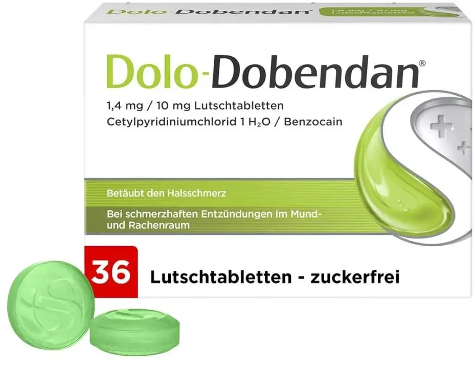 Der angezeigte Preis könnte seit dem letzten Update gestiegen sein - EAN: 4042763436074 - Dolo-Dobendan ¢ 1,4 mg / 10 mg Lutschtabletten Wirkstoffe: Cetylpyridiniumchlorid, Benzocain Zusammensetzung: 1 Lutschtablette enth.: Wirkstoffe: 1,4 mg Cetylpyridiniumchlorid 1 H2O; 10 mg Benzocain. Sonst. Best.: Limettöl; Citronenöl; Chinolingelb;... - Zustand: NEW - bei SHOP APOTHEKE - gefunden von Buycentral Dieses Angebot für Dolo-Dobendan Halsschmerztabletten ist eine bewährte Wahl zur Linderung von Halsschmerzen. ![]() ![]() Dolo-Dobendan Halsschmerztabletten 1,4mg/10mg €“ Schmerzlindernde Lutschtabletten bei Halsschmerzen & schmerzhaften Entzündungen im Mund- & Rachenraum €“ 1 x 36 Tabletten