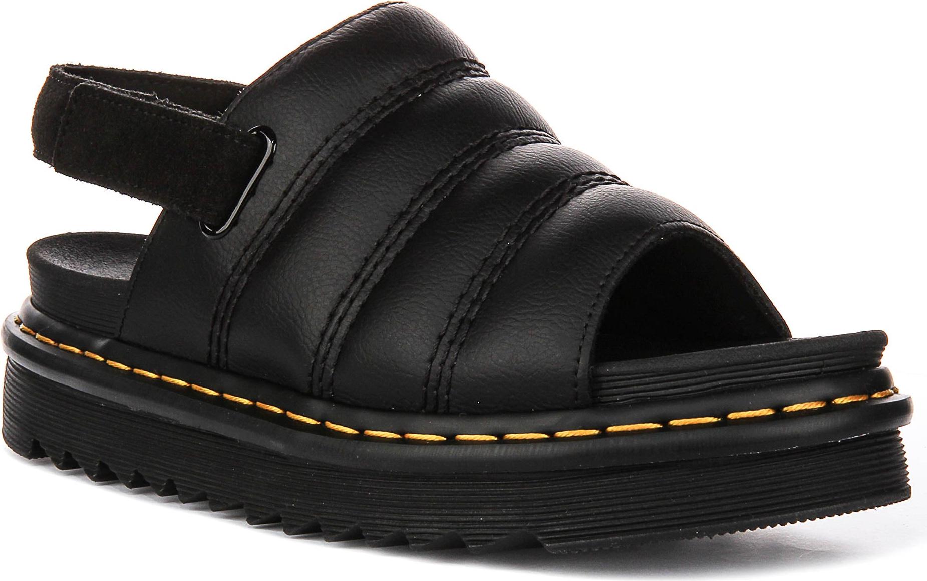 EAN: 0190665719093 - Vorstellung der Dr. Martens Kole Damen-Ledersandalen eine stilvolle und praktische Wahl für die moderne Frau, die Komfort und ikonisches Design gleichermaßen schätzt. Hergestellt von Dr. Martens, einer Marke, die für Langlebigkeit und zeitlosen Charme steht, vereinen diese Sandalen perfekte Alltagstauglichkeit mit dem markanten Look, den Sie erwarten.Die Kole Sandalen verfügen über ein hochwertiges Lederobermaterial, das sowohl für Langlebigkeit als auch für ein elegantes, gepflegtes Erscheinungsbild sorgt. Das gepolsterte Design mit drei Riemen vorne bietet einen sicheren und zugleich flexiblen Sitz, während die offene Zehenpartie einen Hauch lässiger Eleganz verleiht ideal für wärmere Tage und entspannte Anlässe. Der verstellbare Fersenriemen aus weichem Wildleder ermöglicht eine individuelle Anpassung und hält den Fuß den ganzen Tag über bequem an seinem Platz.Diese Sandalen präsentieren sich in klassischem Schwarz, ergänzt durch die markante gelbe Steppnaht von Dr. Martens, die sie sofort als unverzichtbares Kleidungsstück dieser legendären Marke erkennbar macht. Die dicke, profillierte Gummisohle bietet hervorragenden Halt und Unterstützung, was für Stabilität sorgt egal, ob Sie durch die Stadt schlendern oder sich auf ein Sommerabenteuer begeben. Das gepolsterte Fußbett erhöht den Tragekomfort und macht diese Sandalen ideal für den ganzen Tag.Speziell für Damen entworfen, sind die Dr. Martens Kole Sandalen die perfekte Kombination aus Komfort, ... Dieses vegane Modell ist eine umweltfreundliche Alternative zum klassischen Dr. Martens Stiefel und bietet den gleichen ikonischen Stil. ![]() ![]() Dr. Martens 1461 Vegan Schuhe Black 39