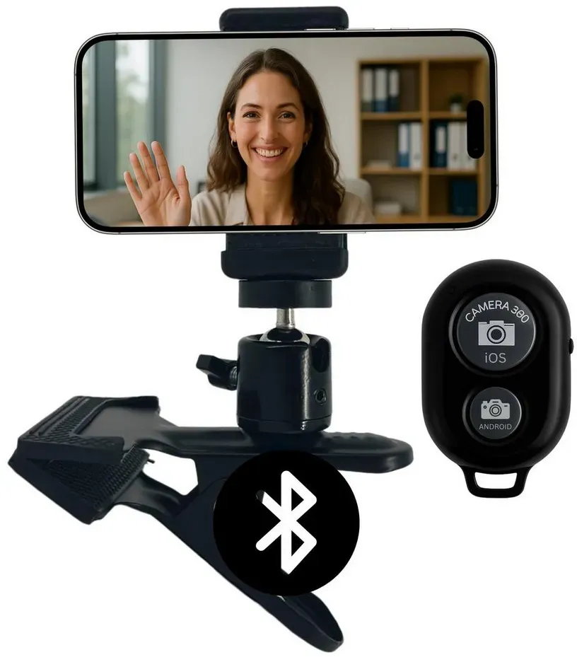 lieferbar-in 2-3 Werktagen bei dirTronicXL Handy-Dockingstation Handy Halterung + Selbstauslöser Smartphone Klemmstativ Tisch Klemme, (Halter Schreibtischhalterung Tischhalterung, 1 St., LiveStream Fotografie Video), Kugelkopf für iPhone Handys Smartphones schwarz