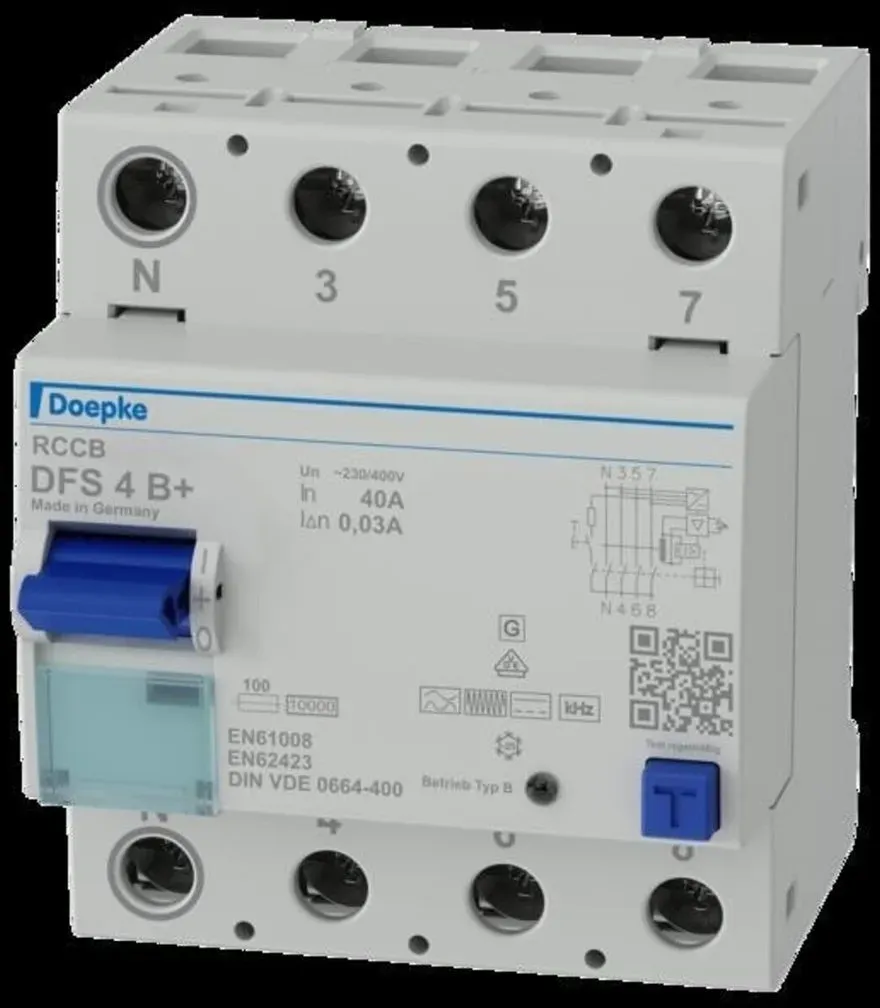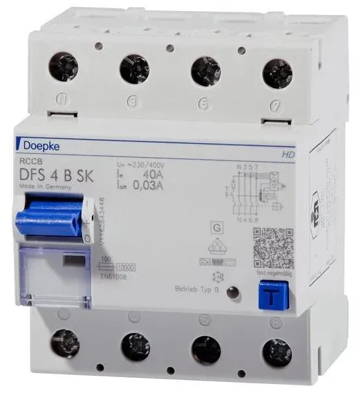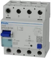 Sofort verfügbar (Lieferzeit 1-3 Werktage)Doepke FI-Schutzschalter DFS 4 040-4/0,03-B SK, 40A, 30mA, N links, Typ B, 4polig