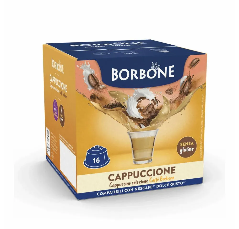 Der angezeigte Preis könnte seit dem letzten Update gestiegen sein - EAN: 7613036306294 - Dolce Gusto »Cappuccino« - 2x 8 Kapseln, Geschmack (Herstellerangabe): intensiv und extra cremig / mit cremigen Milchschaum, Kaffee-Art: gemahlen, Kaffeesorte: Kaffeemischung, Kaffee-System: Dolce Gusto, Anzahl Portionen: 8, Packungsmenge: 1 Stück,... - Zustand: NEW - bei OTTO Office - gefunden von Buycentral Für 12,32 Euro erhalten Sie 16 Kapseln von Caffè Borbone, einer beliebten Alternative zu den Originalkapseln. ![]() ![]() Caffè Borbone Kaffee Cappuccino, 16 Kapseln, Kompatibel mit Nescafé Dolce Gusto Maschinen*