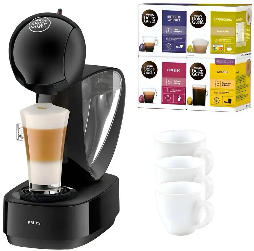 lieferbar-in 6-7 Werktagen bei dirNESCAF Dolce Gusto Kapselmaschine Krups INFINISSIMA 4 Boxen mit Kapseln und drei stilvolle Espresso-Gläser, Kapsel, Kompaktes Design, Set mit Gläsern & ca. 70 Kaffeekapseln schwarz