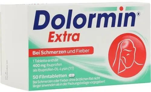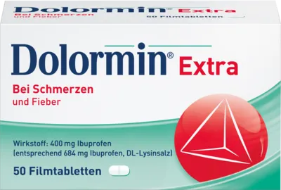 Dolormin - EAN: 4150024002293 - PZN: 02400229 Dolormin Extra 50 Filmtabletten - bei volksversand.de - aus Yadore Produktdaten Aliva.de bietet Dolormin Extra Ibu-Lysin Tabletten bei Schmerzen und Fieber 50 St für 15,97 Euro an, was im oberen Preissegment für Einzelpackungen liegt. ![]() ![]() Dolormin Extra Ibu-Lysin Tabletten bei Schmerzen und Fieber 50 St