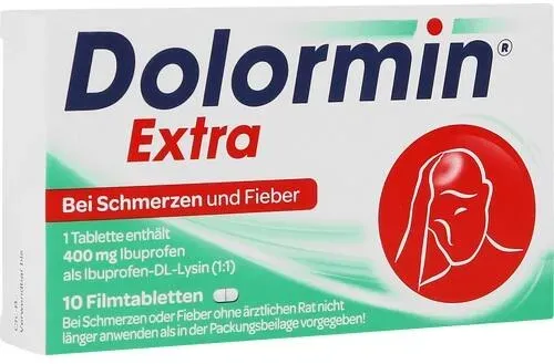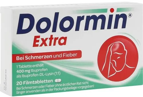 Dolormin extra META PreisvergleichMit dem Meta-Preisvergleich suchen Sie gleichzeitig bei den großen Preisvergleich Portalen!Jetzt live Suche nach dolormin extra starten! Dolormin extra KaufberatungDolormin Extra ist ein schmerzlinderndes und fiebersenkendes Medikament mit dem Wirkstoff Ibuprofen als Ibuprofen-DL-Lysin (400 mg pro Tablette), das schnell wirkt (meist ab 15 Minuten) und bis zu 8 Stunden anhält[1][3][4]. Wichtig zu beachten ist: