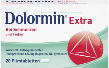 0,31 /St - Kategorie: Arzneimittel - kenvue - GTIN:4150000910895 - PZN:00091089 - Dolormin Extra 400 mg Ibuprofen 20 St - rezeptfrei - von Kenvue Germany GmbH (OTC) - Filmtabletten - 20 St - 6,12 Euro bei DocMorris Apotheke - gefunden von billiger.de Dieses Angebot von ayvita.de ist mit 6.54 Euro für 20 Tabletten eine gute Option für den mittleren Bedarf zu einem fairen Preis. ![]() ![]() kenvue DOLORMIN extra Filmtabletten 20 St