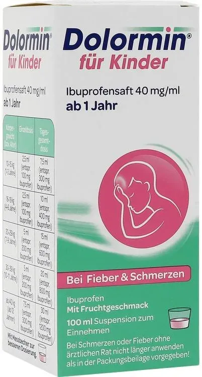Rheuma Muskelschmerz Mode Beauty Gesundheit Apotheke Medikamente - - Wirkstoff: Ibuprofen als Ibuprofen, DL-Lysinsalz. Anwendungsgebiete: Symptomatische Behandlung leichter bis mäßig starker Schmerzen - wie Kopfschmerzen, Zahnschmerzen, Regelschmerzen. Fieber. Für Kinder ab 20 kg ( und älter), Jugendliche und Erwachsene. - Versandkostenfrei: false - Sale: true - Lieferzeit: sofort lieferbar - - - bei Mediherz - gefunden von shopping24 Dies ist eine kostengünstige Option für Dolormin für Kinder Ibuprofensaft, ideal für Familien. ![]() ![]() kenvue Dolormin für Kinder Ibuprofensaft 40 mg/ml