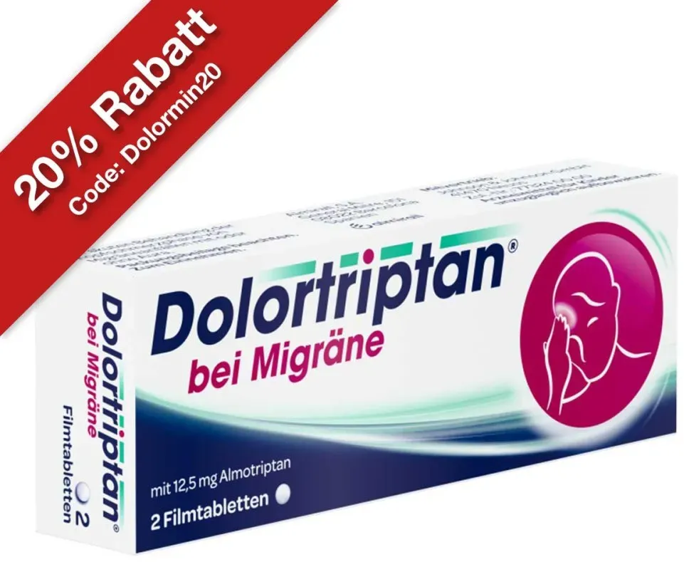 3,50 /Stück - Kategorie: Arzneimittel - kenvue - GTIN:4150030296136 - PZN:03029613 - Dolortriptan bei Migräne Filmtabletten 2 Stück - von Kenvue Germany GmbH (OTC) - Kategorie: Migräne - Versand: 2,95 , ab 18 versandkostenfrei - 6,99 Euro bei healthii - gefunden von billiger.de ![]() ![]() Kenvue Germany GmbH Dolortriptan bei Migräne Filmtabletten 2 St 03029613_DBA
