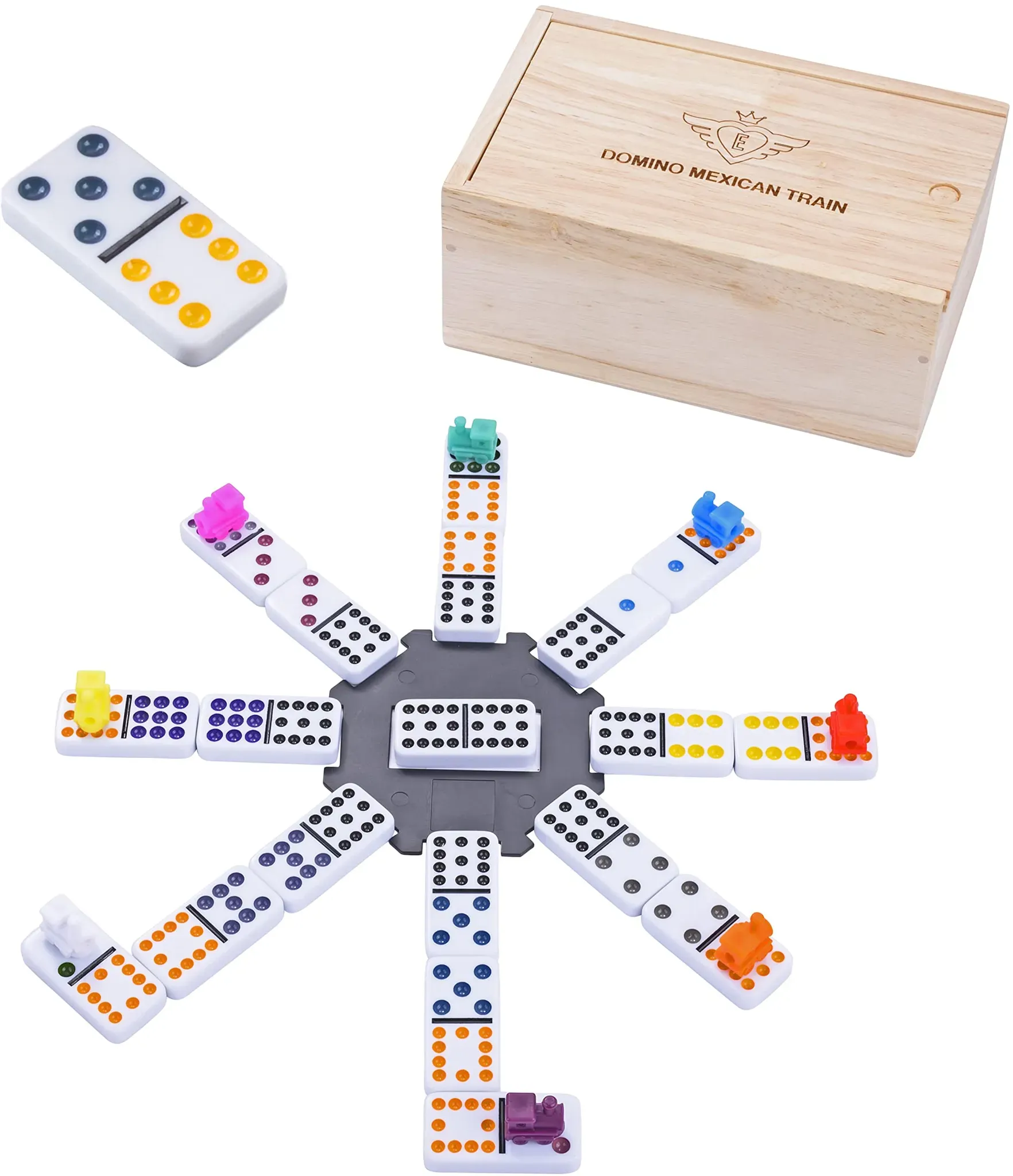 Gesamtsortiment Spielzeug Spiele + Puzzles Gesellschaftsspiele Geschicklichkeitsspiele - EAN:6416739404844 - Feiertagsversion eines der beliebtesten Dominospiele der Welt: Mexican Train. Inhalt: 91 Dominosteine mit Zahlen, 8 Markierungszüge, 4 Dominosteinhalter und Spielregeln. Macht zu zweit Spass, besonders aber mit Freunden. Die Reiseversion hat Zahlen statt Punkte. Das zählt und ist einfacher zu spielen als der reguläre mexikanische Zug, der Spielsteine mit maximal 24 Punkten hat. Die Reiseversion verfügt über Spielsteine aus Pappe, diese sind jedoch von ausgezeichneter Qualität und halten lange. Geeignet für 2 bis 8 Spieler. - gefunden von Kelkoo Das Schmidt Spiele Classic Line: Tripple Domino bietet eine interessante Variation des klassischen Dominospiels. ![]() ![]() Schmidt Spiele Classic Line: Tripple Domino (Deutsch)
