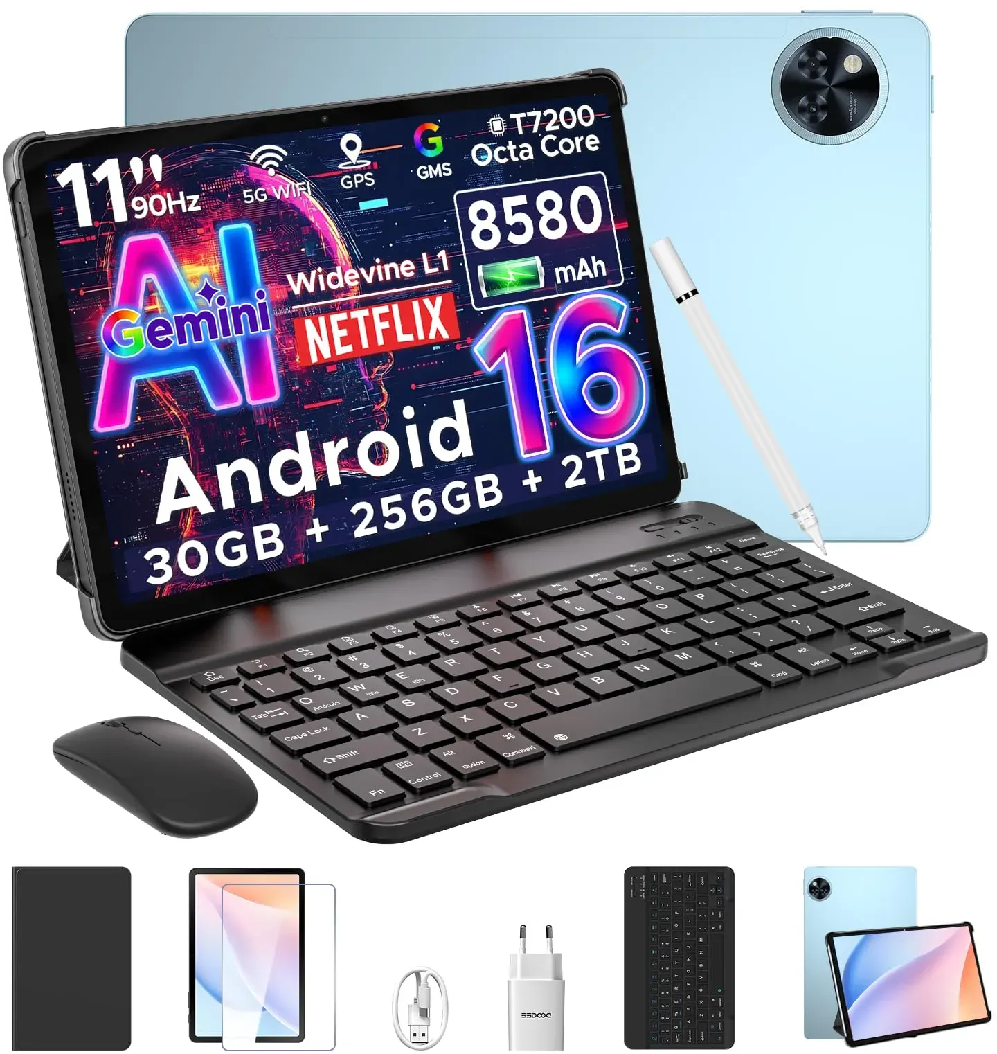 Kategorie: Tablet PCs - Doogee - GTIN:6923740278673 - Android 16 + Gemini Al + T7200 Octa-Core Prozessor: DOOGEE U11 Tablet wird mit dem neuesten Android 16 betrieben, das die Kontrolle über App-Berechtigungen optimiert und Ihnen mehr Kontrolle über Ihre Privatsphäre und Daten gibt. Mit dem leistungsstarken MediaTek Unisoc T7200 Chip meistert das tablet 10+ zoll problemlos Multitasking, hochauflösende Videowiedergabe oder leichte Spiele. In Kombination mit Gemini AI optimiert es Ressourcen intelligent und beschleunigt Aufgaben wie Fotobearbeitung oder Echtzeitübersetzungen 8580mAh Großer Akku + Metallgehäuse: DOOGEE U11 tablet Android 16 ist mit einem großen 8580mAh Akku mit hoher Leistung und geringem Stromverbrauch ausgestattet, der mehrere Tage halten kann, sodass Sie Filme ansehen, Dramen nachholen und Musik hören können eine lange Zeit ohne Sorgen. Das tablet 11 zoll verfügt über ein leichtes Metallgehäuse mit einer Dicke von nur 8,0mm und einem Gewicht von 537g, was es mit einer stabileren und dünneren Struktur sehr tragbar macht 16GB RAM + 128GB ROM + 2TB Erweiterung: DOOGEE U11 Tablet 11 Zoll Android 16 ist mit 4GB LPDDR4X RAM + 12GB virtuellem Speicher und 128GB ROM ausgestattet. Die Speicherkapazität kann auch über eine TF-Karte auf 2TB erweitert werden, um alle Ihre Lieblingsfotos und -videos zu speichern und Dateien. Darüber hinaus ist das Gaming Tablet GMS und Widevine L1 zertifiziert. Sie können auf weitere HD Streams auf Google, Netflix, YouTube, Hulu und ... Dieses Tablet mit Android 16 und Gemini AI bietet eine verbesserte Performance und intelligente Funktionen für ein flüssigeres Nutzererlebnis. ![]() ![]() DOOGEE U11 Android 16 AI Tablet 11 Zoll, 16GB+128GB (2TB TF) Gaming Tablets, T7200 Octa Core, 8580mAh, Gemini AI, WiFi 5, 90Hz Display, 13MP+5MP, Tablet mit Tastatur, Maus,Stift,Hülle und Schutzfolie