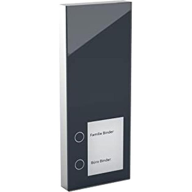Doorline - EAN: 4260322030703 - Doorline Slim Door Station for Intercom and Door Opening via Phone or Smartphone (150715) - bei galaxus.de - aus Yadore Produktdaten Diese Slim DECT Türsprechanlage für 2-Familienhäuser ist ideal für Mehrparteienhäuser und bietet DECT ULE Technologie. ![]() Doorline, Klingel + Türsprechanlage, Slim DECT deuropener met deurintercom voor 2-familiehuis, antraciet (DECT ULE)