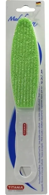 Auf Lager Versand durch AmazonTITANIA 3020 Hornhaut Entferner, Doppelfußfeile mit Softtouch-Einlage, Doppelseitig, Rau & Fein, Sanfte und schonende Fußpflege, Zur Entfernung von Schwielen und Hornhaut, Made in Germany
