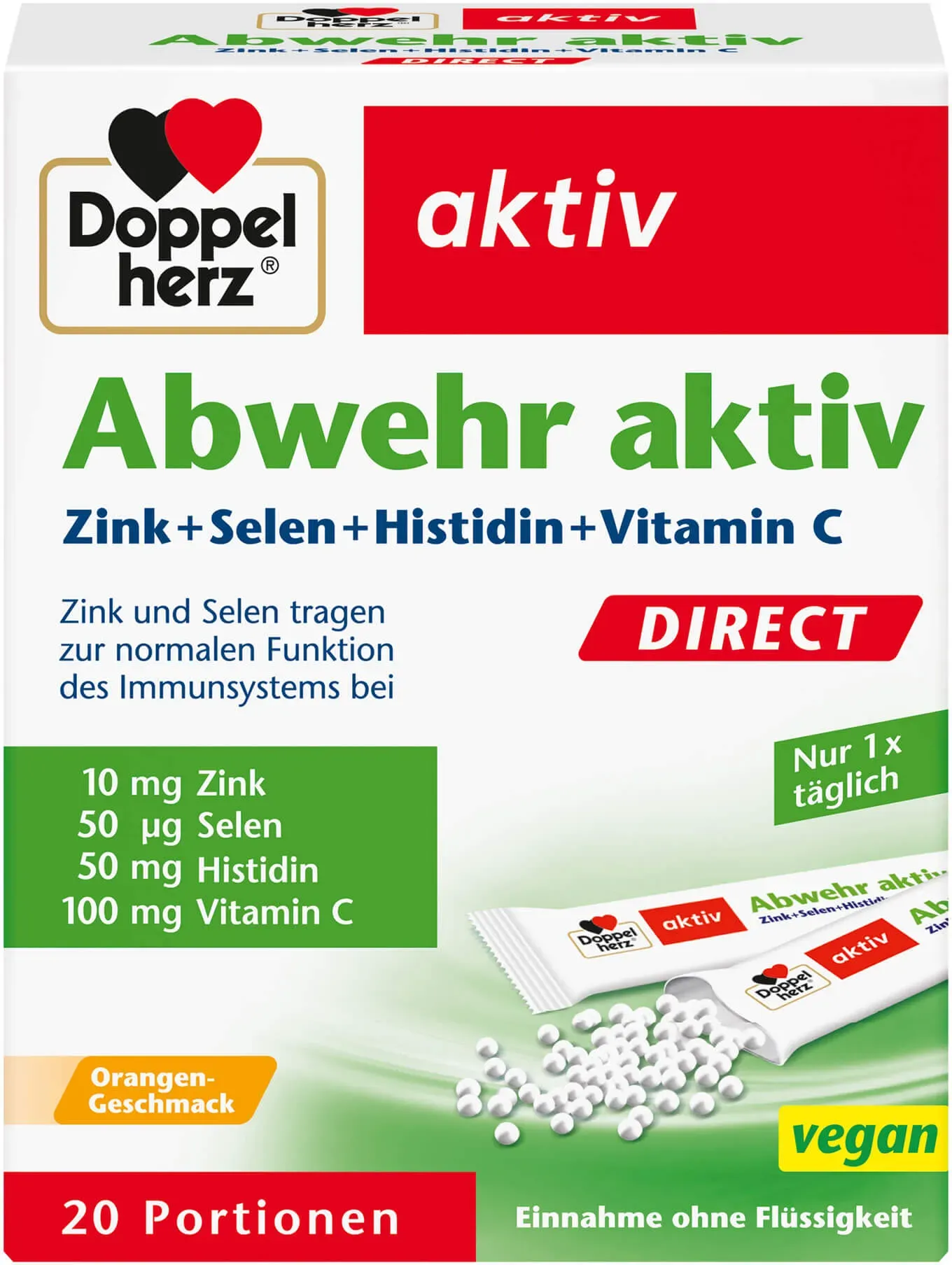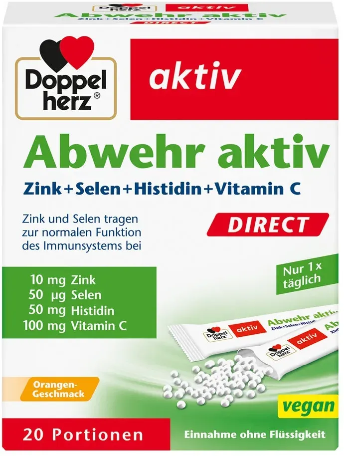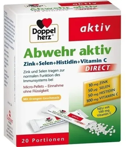 Auf Lager Versand durch AmazonDoppelherz Abwehr aktiv DIRECT - mit Zink, Selen & Vitamin C zur Unterstützung des Immunsystems PLUS Histidin - 20 Micro-Pellets mit Orangen-Geschmack