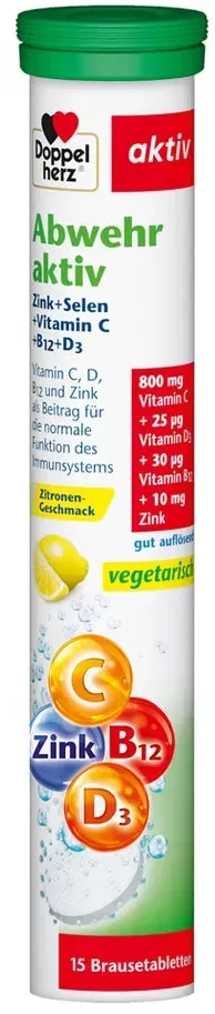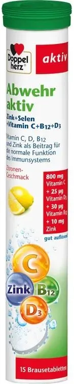 Auf Lager Versand durch AmazonDoppelherz Abwehr aktiv Zink + Selen + Vitamin C + B12 + D3 - als Beitrag für die normale Funktion des Immunsystems - 15 gut auflösende Brausetabletten mit Zitronen-Geschmack