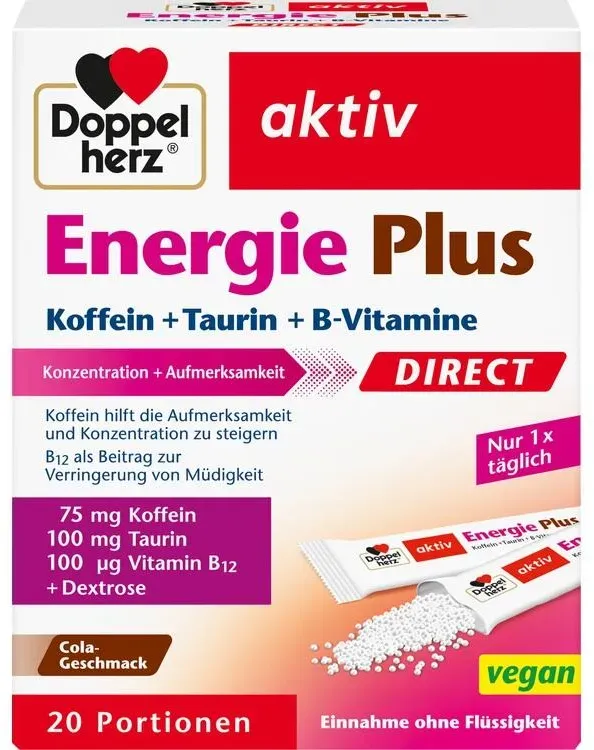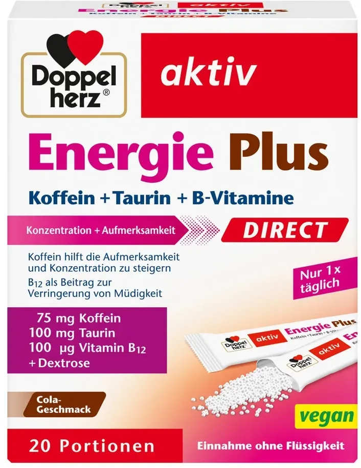 Auf Lager Versand durch AmazonDoppelherz Energie Plus Koffein + Taurin + B-Vitamine DIRECT ? Mit Vitamin B1, B5 (Pantothensäure) und B12 als Beitrag zum Energiestoffwechsel ? 20 Portionsbeutel