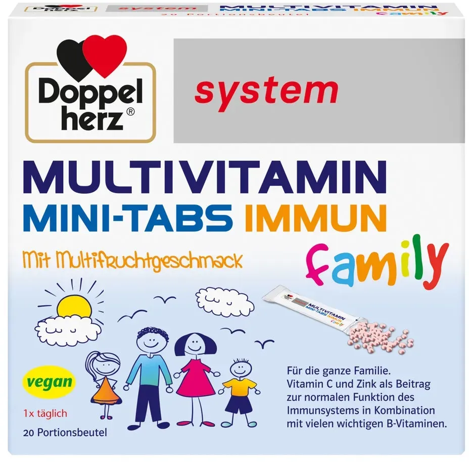 1 Händlerangebote bei billiger.de - Kategorie: Nahrungsergänzungsmittel - Doppelherz - A-Z MULTIVITAMINE: Umfassende Versorgung mit 21 ausgewählten Nährstoffen wie Vitamin A, C, D, E & K sowie dem B-Komplex (B1, B2, B3, B5, B6, B7, B9 & B12) PLUS MINERALIEN & SPURENELEMENTE: Die Mineralstoffe Calcium und Magnesium in Verbindung mit den essentiellen Spurenelementen Zink, Phosphor, Selen, Chrom, Molybdän und Jod runden die Versorgung des Tagesbedarfs ab BEI ERHöHTEM BEDARF: Der Verzehr empfiehlt sich besonders bei erhöhtem Nährstoffbedarf durch Sport oder andere körperliche Belastungssituationen BRAUSETABLETTEN: Gut auflösende Brausetabletten mit Orangen-Maracuja Geschmack LIEFERUMFANG: 6 x 15 Brausetabletten - Nahrungsergänzungsmittel mit Süßungsmitteln - Brausetabletten mit Mineralstoffen und Vitaminen - Orangen-Maracuja Geschmack - Nettofüllmenge: 558 g - GTIN:4009932133851 Die Multivitamin Mini-Tabs Family System in der 50er-Packung für 16.95 Euro sind eine gute Wahl für Familien. ![]() ![]() Doppelherz Multivitamin Mini-Tabs Family System 50 stk