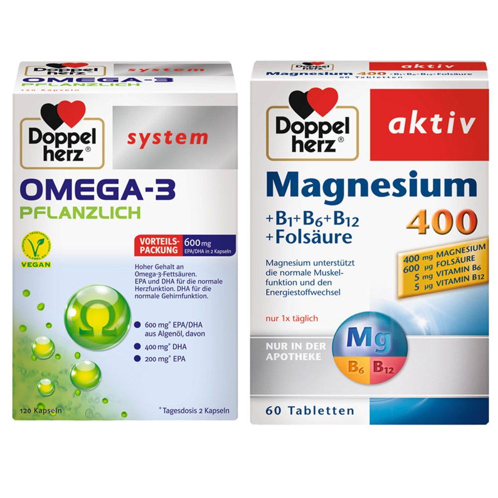 Der angezeigte Preis könnte seit dem letzten Update gestiegen sein - EAN: 4150081056987 - Nahrungsergänzungsmittel sind kein Ersatz für eine ausgewogene und abwechslungsreiche Ernährung als Teil eines aktiven und gesunden Lebensstils.Doppelherz® OMEGA-3 Konzentrat + aktivMagnesium 400 + B1 + B6 + B12 + FolsäureDieses Set besteht aus:... - Zustand: NEW - bei SHOP APOTHEKE - gefunden von Buycentral Eine vegane Kombinationslösung mit pflanzlichem Omega-3 und Magnesium, ideal für eine ganzheitliche Versorgung. ![]() Doppelherz® Omega-3 system pflanzlich + aktiv Magnesium 400 1 St Set