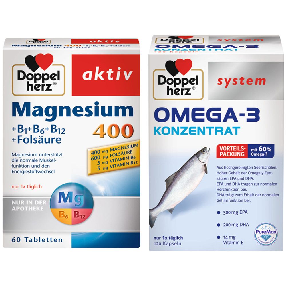 Der angezeigte Preis könnte seit dem letzten Update gestiegen sein - EAN: 4150081103810 - Nahrungsergänzungsmittel sind kein Ersatz für eine abwechslungsreiche und ausgewogene Ernährung und eine gesunde Lebensweise.Doppelherz Omega-3 Seefischöl 1000 Hoher Gehalt an Omega-3-Fettsäuren EPA + DHA als Beitrag für die normale... - Zustand: NEW - bei SHOP APOTHEKE - gefunden von Buycentral Dieses Set kombiniert Omega-3 mit Magnesium, was eine umfassende Unterstützung für Herz und Muskeln bietet. ![]() Doppelherz® Omega-3 Konzentrat + aktiv Magnesium 400 1 St Set
