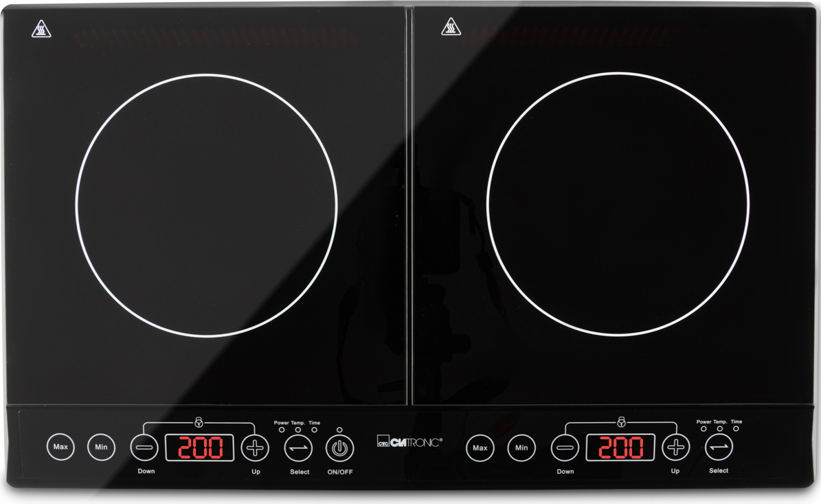 Domo - EAN: 5411397140500 - . Induktions-Doppelkochfeld mit Kochzonen-Durchmesser von je 20 cm . 7 individuell einstellbare Leistungsstufen bis zu 3500 Watt . Temperatureinstellung über LED-Anzeige mit Touchscreen bis 240 C . Digitale Zeitschaltuhr - einstellbar bis 3 Stunden . Leichte Reinigung durch hochwertige Keramikoberfläche . Besonders sicher durch einstellbare Kindersicherung Merkmale: Ausführung: Doppelkochplatte, Induktion, elektrisch weitere Produktinformationen: Anzahl Kochfelder: 2 Maße Kochfelder: ( ) 20 cm maximale Leistung: 3500 Watt Farbe: schwarz Maße: (BxHxT) 60,5 x 4,1 x 37,0 cm - bei bueromarkt-ag.de - aus Yadore Produktdaten Die Rommelsbacher CT 3420/IN ist ein hochwertiges Modell mit 3400W, das für seine präzise Temperaturregelung und Zuverlässigkeit geschätzt wird. ![]() Rommelsbacher CT 3420/IN Doppelkochplatte Induktion 3400W