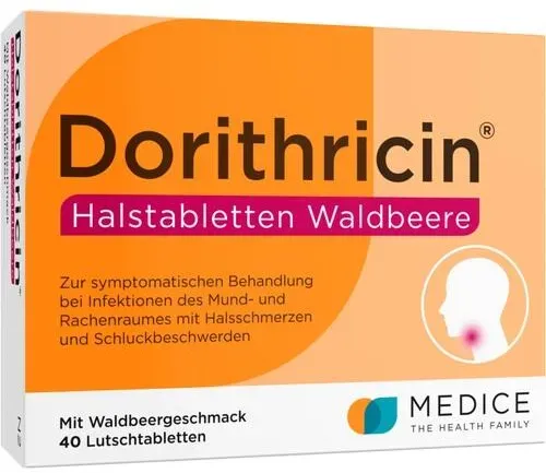 Zustand: Neu - 0,42 € / stück - Erkältung & Grippe Medikamente bei Erkältung - Dorithricin MEDICE Arzneimittel Pütter GmbH & Co. KG - 00002565 07727946 - EAN: 4150077279468 - ðŸŒ¡ï¸ ð—šð—²ð—´ð—²ð—» ð—›ð—®ð—¹ð˜€ð˜€ð—°ð—µð—ºð—²ð—¿ð˜‡ð—²ð—» ð˜‚ð—»ð—± ð—¦ð—°ð—µð—¹ð˜‚ð—°ð—¸ð—¯ð—²ð˜€ð—°ð—µð˜„ð—²ð—¿ð—±ð—²ð—» - Dorithricin Classic überzeugt mit seiner schnellen und lang anhaltenden Wirkung - wirkt in Minuten. Hält über Stunden ðŸŒ¡ï¸ ð—¦ð—²ð—µð—¿ ð—´ð˜‚ð˜ ð˜ƒð—²ð—¿ð˜ð—¿äð—´ð—¹ð—¶ð—°ð—µ - keine Wechselwirkungen mit anderen Arzneimitteln bei bestimmungsgemäßen Gebrauch, zudem ist Dorithricin frei von Zucker, Lactose und Gluten ðŸŒ¡ï¸ ð—¦ð—°ð—µð—»ð—²ð—¹ð—¹ð—² ð˜‚ð—»ð—± ð—¹ð—®ð—»ð—´ð—®ð—»ð—µð—®ð—¹ð˜ð—²ð—»ð—±ð—² ð—ªð—¶ð—¿ð—¸ð˜‚ð—»ð—´ - die Dorithricin Halstabletten bekämpfen Bakterien und Viren im Mund- und Rachenbereich in allen Phasen einer Halsentzündung ðŸŒ¡ï¸ ð—™ð—®ð—ºð—¶ð—¹ð—¶ð—²ð—»ð—³ð—¿ð—²ð˜‚ð—»ð—±ð—¹ð—¶ð—°ð—µ - für Kinder ab n, sobald sie kontrolliert lutschen können, für Jugendliche und für Erwachsene mit erfrischendem Minzgeschmack ðŸŒ¡ï¸ ð—˜ð—¶ð—»ð—³ð—®ð—°ð—µð—² ð——ð—¼ð˜€ð—¶ð—²ð—¿ð˜‚ð—»ð—´ - nach Bedarf können alle 2-3 Stunden jeweils 1-2 Lutschtabletten von den Dorithricin Classic Halstabletten eingenommen werden - 23 Händler im amazon.de Marketplace Dieses Angebot von Sanicare Apotheke ist eine gute Wahl für die Waldbeere-Variante im mittleren Preissegment. ![]() ![]() MEDICE Dorithricin Waldbeere Lutschtabletten bei Halsschmerzen 40 St Lutschtabletten