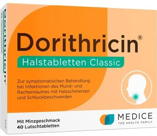 0,36 /Stück - Kategorie: Arzneimittel - MEDICE - GTIN:4251595200528 - PZN:07727946 - Dorithricin Halstabletten Classic Wirkstoffe: Tyrothricin/Benzalkoniumchlorid/Benzocain Anwendungsgebiete: Zur symptomatischen Behandlung bei Infektionen des Mund- und Rachenraumes mit Halsschmerzen und Schluckbeschwerden. Hinweis: Enthält Minzöl - 14,49 Euro bei medikamente-per-klick.de - gefunden von billiger.de Dieses Angebot auf Amazon.de ist eine beliebte Wahl für die Classic-Variante mit vielen Händlern. ![]() ![]() Dorithricin Halstabletten Classic 40 Lutschtabletten bei Halsschmerzen & Schluckbeschwerden - bekämpft Bakterien & Viren - Minzgeschmack - ab 2 J