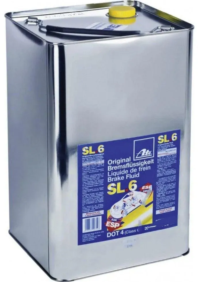 7 /l - Kategorie: Sonstiges Autozubehör - ATE - GTIN:4006633207485 - Ate 1x 5 Liter Bremsflüssigkeit SL.6 DOT4 (03.9901-6403.2) - Technische Informationen: Inhalt: 5 Liter | Beschaffenheit: Homogen, klar | Farbe: gelb | Siedetemperatur min. 265 C | Nass-Siedetemperatur min. 175 C]. Einschränkungen: Spezifikationen/Bremsflüssigkeitsnormen: DIN/ISO 4925 | FMVSS Nr. 116-DOT4 | SAE J1704] - 34,99 Euro bei atp-autoteile.de - gefunden von billiger.de Dieses Angebot für 20 Liter ATE Bremsflüssigkeit SL6 Dot4 ist eine sehr kostengünstige Option für Großverbraucher oder Werkstätten. ![]() ![]() ATE Bremsflüssigkeit SL6 Dot4 20L