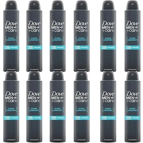 32.11 / l - Kategorie: Deodorants - Dove - GTIN:8712561254595 - 6 er Pack Dove Men+Care Anti-Transpirant Spray Clean Comfort Deospray Deodorant 6 x 150 ml - 28,90 Euro bei Amazon Marketplace Beauty - gefunden von billiger.de Dieser 12er-Pack Deosprays ist die größte verfügbare Menge und bietet den besten Stückpreis für Vielverbraucher. ![]() ![]() 12x Dove Men+Care Men+Care Anti-Transpirant Deo Spray Clean Comfort schützt 48 Stunden vor Körpergeruch und Schweiß,Deodorant schützt vor Körpergeruch und Achselnässe,200ml (12er Pack)