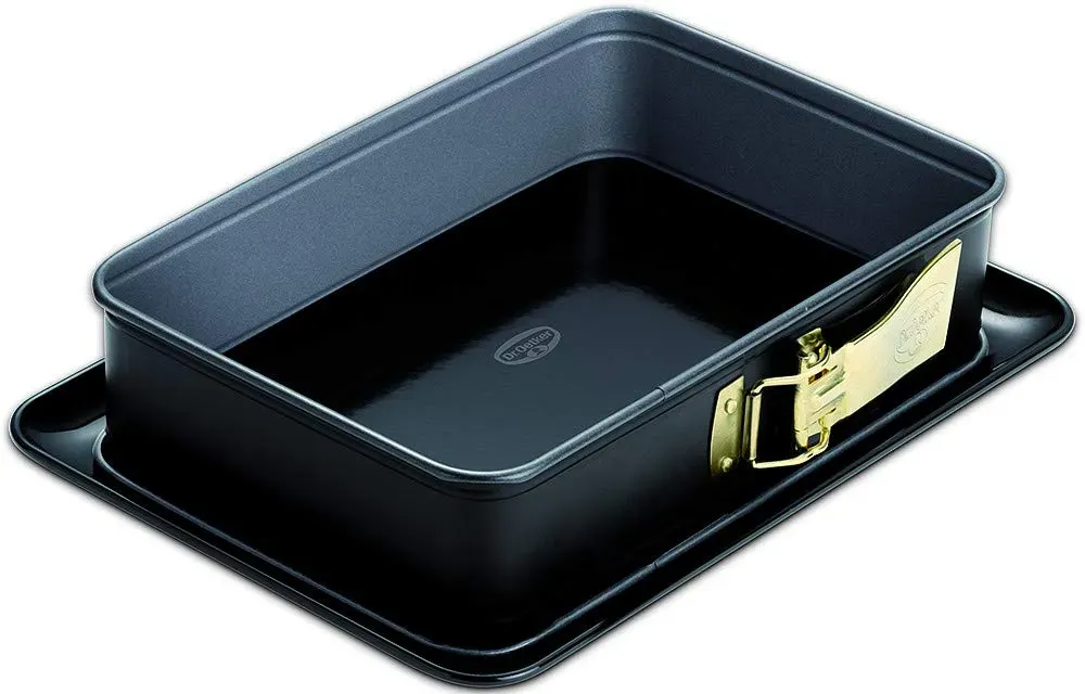 Auf Lager Versand durch AmazonDr. Oetker Rechteckige Springform mit Emaille-Servierboden, 28 cm, Back-Idee ? Antihaft-Beschichtung, schnitt- & kratzfester Boden, hitzebeständig bis 230°C, auslaufsicher