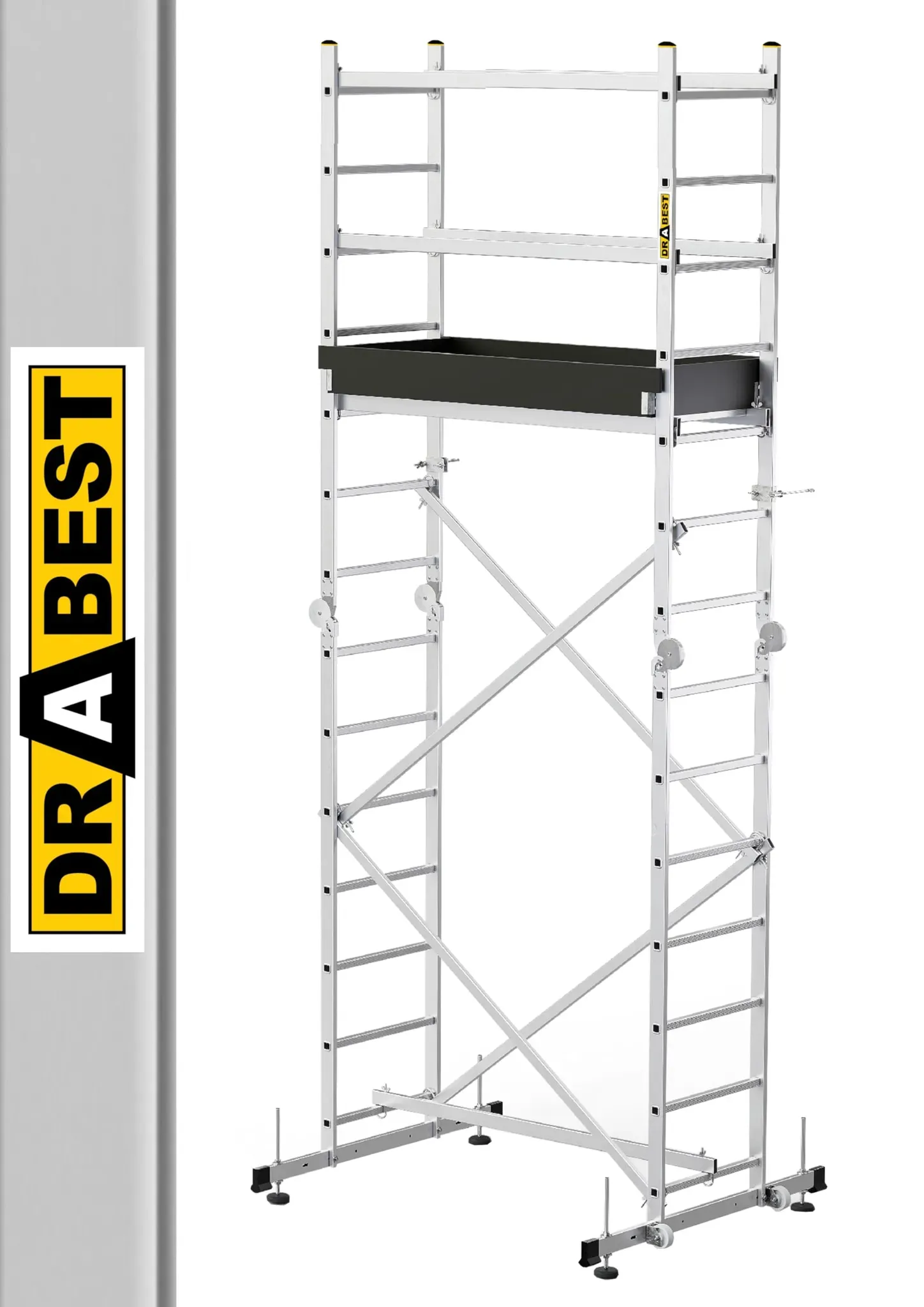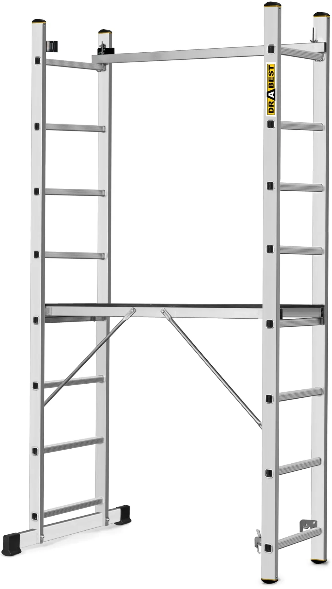 Kategorie: Leitern - Drabest - GTIN:5904680990369 - Mit einer Länge von 10,07 m und einer Arbeitshöhe von bis zu 10,83 m ist die Leiter ideal für Arbeiten in größeren Höhen. Ihre robuste Konstruktion ermöglicht einen zuverlässigen Einsatz auch unter anspruchsvollen Bedingungen Eine Leiter für Profis, die Wert auf Sicherheit und Zuverlässigkeit legen. Sie eignet sich gut als freistehende Leiter, als Stufenleiter und in der A-Konfiguration mit einer Verlängerung, die sich an verschiedene Aufgaben anpasst. Der sichere, verschraubte Stabilisator sorgt für maximale Stabilität und Sicherheit bei der Arbeit. Kein Wackeln oder Gleichgewichtsprobleme mehr. Die robusten 28x28 mm großen Sprossen sind mit einer gerillten, rutschfesten Oberfläche versehen, die auch unter schwierigen Bedingungen Stabilität und Zuverlässigkeit bei der Benutzung rt. Die Leiter ist mit rutschfesten Füßen und Stoßdämpfern ausgestattet, die für Stabilität sorgen und das Aufstellen in einer freistehenden Position erleichtern. Dadurch ist keine zusätzliche Stütze erforderlich und die Arbeit wird sicher und bequem. - 489,90 Euro bei Amazon Marketplace Home - gefunden von billiger.de Das DRABEST Hector PRO ist ein umfassendes Leiter-Gerüst-System, das maximale Flexibilität und Arbeitshöhe für professionelle Anwender bietet. ![]() ![]() DRABEST Hector PRO - Leiter - Gerüst - Klappleiter - Aluminiumleiter - Leitergerüst - Max. Arbeitshöhe 4,73 m - Mehrzweckleiter - Trittleiter, Baugerüst, für Garten, Haushalt, BAU - Aluminium - Mobil