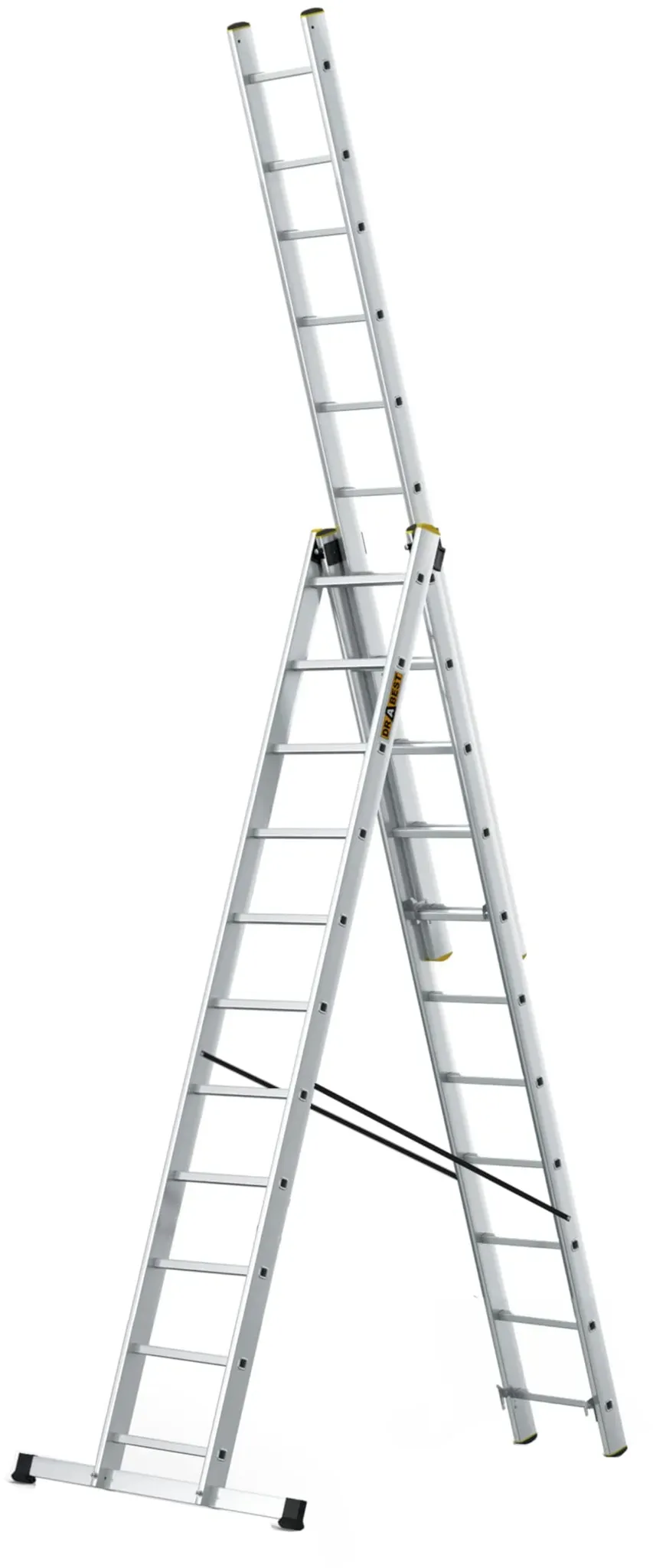 Kategorie: Leitern - Drabest - GTIN:5904680313106 - Mit einer Länge von 7,77 m und einer Arbeitshöhe von bis zu 8,61 m ist die Leiter ideal für Arbeiten in größeren Höhen. Ihre robuste Konstruktion ermöglicht einen zuverlässigen Einsatz auch unter anspruchsvollen Bedingungen Eine Leiter für Profis, die Wert auf Sicherheit und Zuverlässigkeit legen. Sie eignet sich gut als freistehende Leiter, als Stufenleiter und in der A-Konfiguration mit einer Verlängerung, die sich an verschiedene Aufgaben anpasst. Der sichere, verschraubte Stabilisator sorgt für maximale Stabilität und Sicherheit bei der Arbeit. Kein Wackeln oder Gleichgewichtsprobleme mehr. Die robusten 28x28 mm großen Sprossen sind mit einer gerillten, rutschfesten Oberfläche versehen, die auch unter schwierigen Bedingungen Stabilität und Zuverlässigkeit bei der Benutzung rt. Die Leiter ist mit rutschfesten Füßen und Stoßdämpfern ausgestattet, die für Stabilität sorgen und das Aufstellen in einer freistehenden Position erleichtern. Dadurch ist keine zusätzliche Stütze erforderlich und die Arbeit wird sicher und bequem. - 359,90 Euro bei Amazon Marketplace Home - gefunden von billiger.de Die 3-teilige Mehrzweckleiter mit 3x16 Stufen ist die höchste Option in dieser Auswahl und ideal für professionelle Anwendungen mit einer Arbeitshöhe von 10,83 m. ![]() ![]() DRABEST Leiter PRO Serie Aluleiter 3-teilig Mehrzweckleiter 3x16 Stufen Leiter Multifunktionsleiter Kombileiter bis 150 kg Beslastbar - Arbeitshöhe 10,83 m - inkl. Eimerhaken